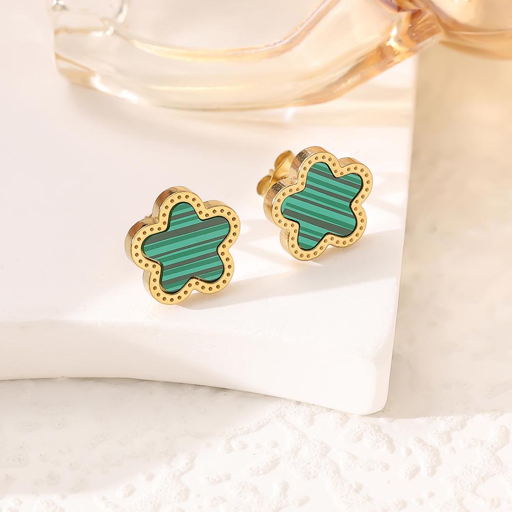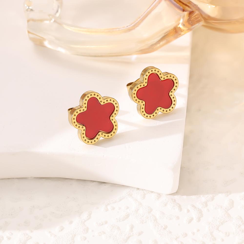 Ювелирный набор SHEIN с покрытием из 18-каратного золота, в виде пятилепесткового цветка: Браслет, ожерелье и серьги-пусеты из нержавеющей титановой стали