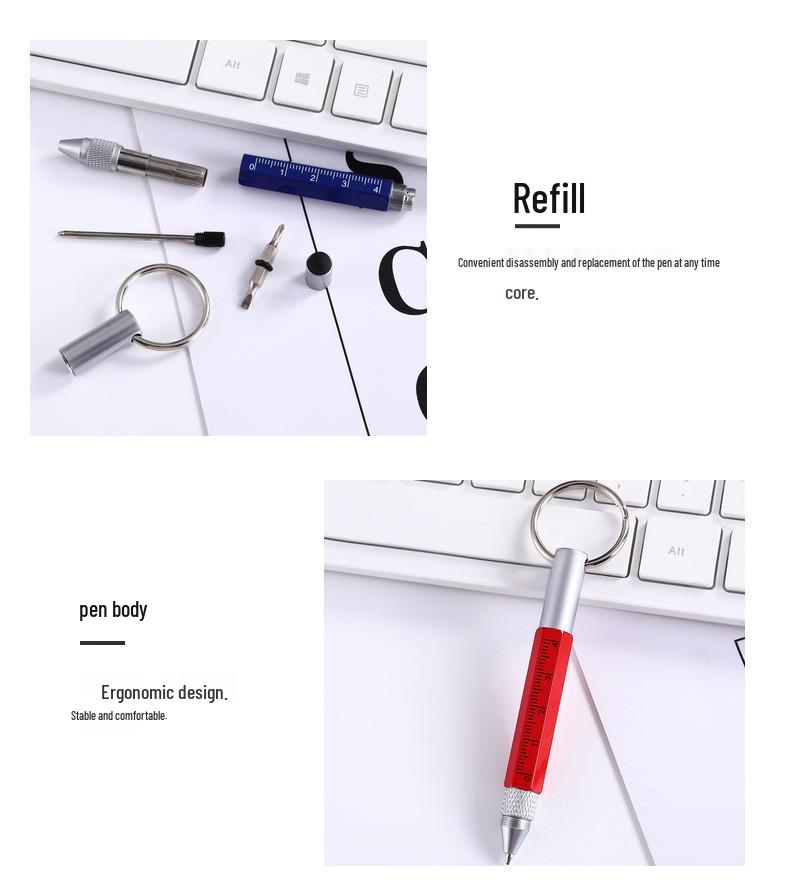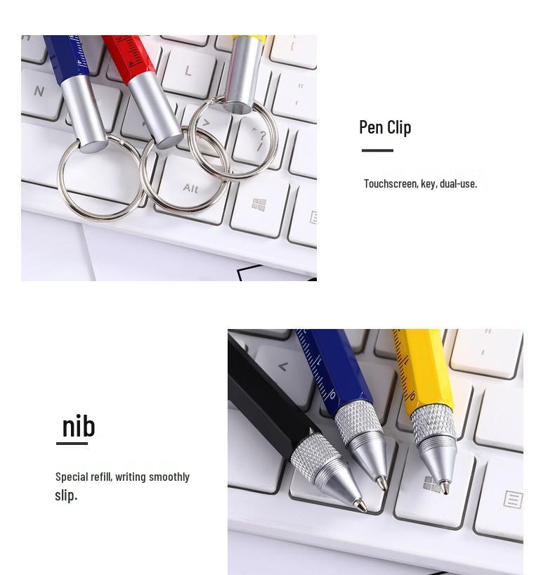 Металлическая многофункциональная шариковая ручка 6-в-1 со стилусом для сенсорного экрана, отверткой и аварийным инструментом.