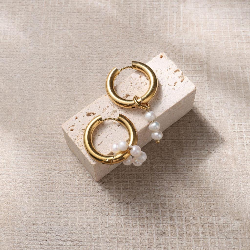 Французские романтические серьги с жемчугом с покрытием из 18-каратного золота - Элегантный и универсальный дизайн из нержавеющей стали для женщин