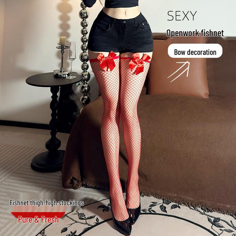 Женские милые носки-сетка выше колена с бантом, ажурный жаккард, тонкие летние чулки, устойчивые к затяжкам, крупная сетка — купить товар онлайн с бесплатной доставкой по всему миру!