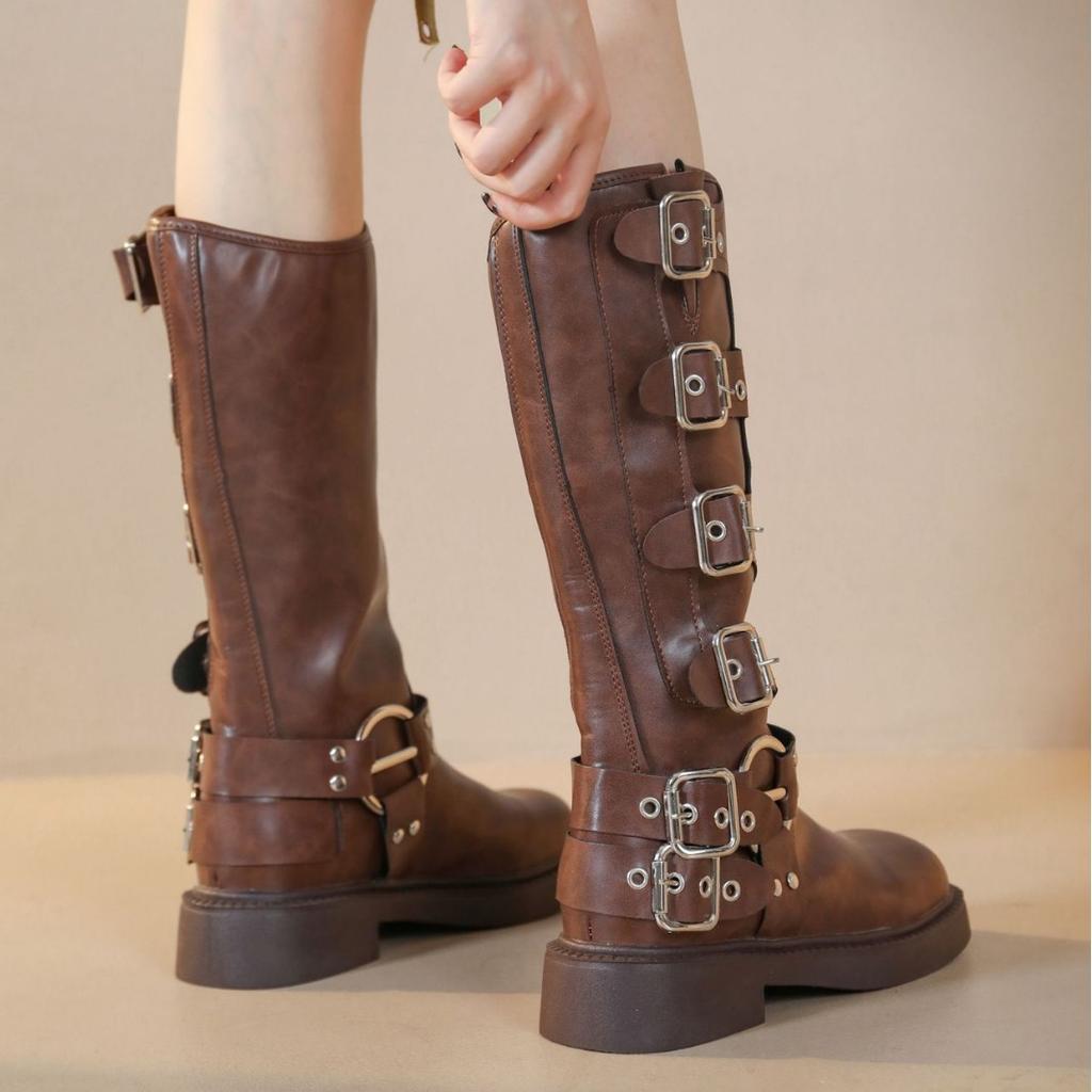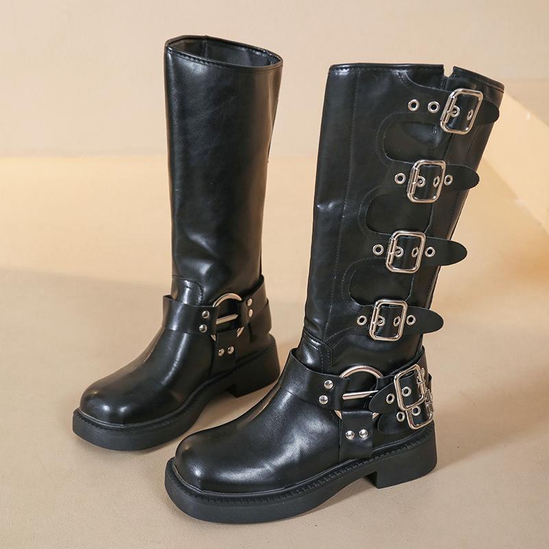 Длинные сапоги женская мода, но до колена ковбойские сапоги в стиле вестерн толстые каблуки ретро рыцарские сапоги полированные панк мотоциклетные сапоги