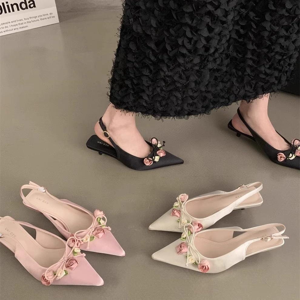 Туфли на шпильке с острым носком, сандалии с французским мыском, обувь в сказочном стиле для женщин, для ношения весной и летом, белые сандалии на высоком каблуке, корейская версия, одинарные туфли