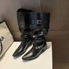 Западные ковбойские ботинки на толстом каблуке, женские осенние модели 2025, новые модели, ботфорты женские с большим обхватом голенища, женские ботинки