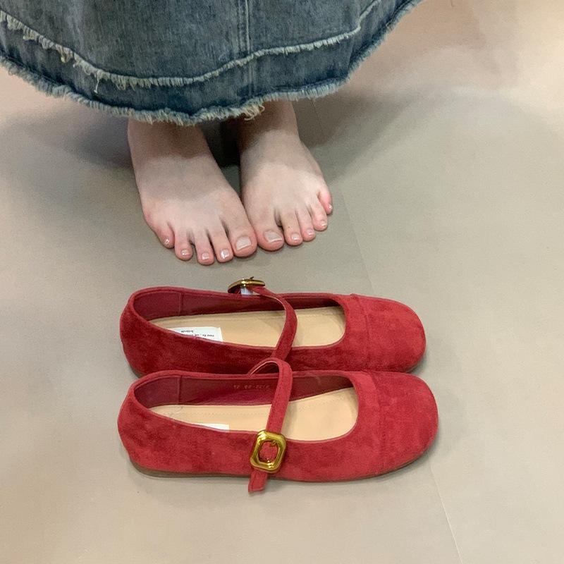 Французские туфли Мэри Джейн на плоской подошве с неглубоким вырезом женские 2025 новая летняя корейская версия балетные элегантные вечерние туфли туфли Дуду