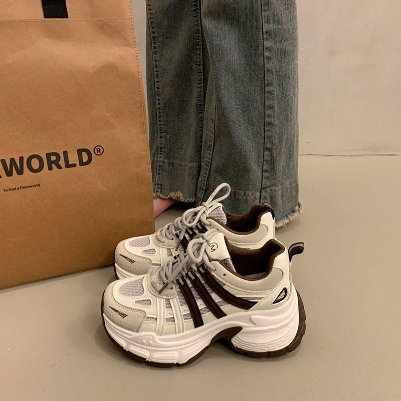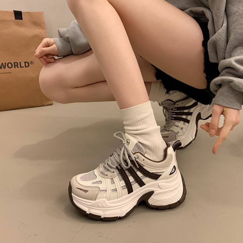 Бордовый ретро-ботинки с изображением ног на маленькой платформе для папы, женская обувь 2025 года, новая осенняя легкая обувь для увеличения роста, повседневная спортивная обувь