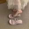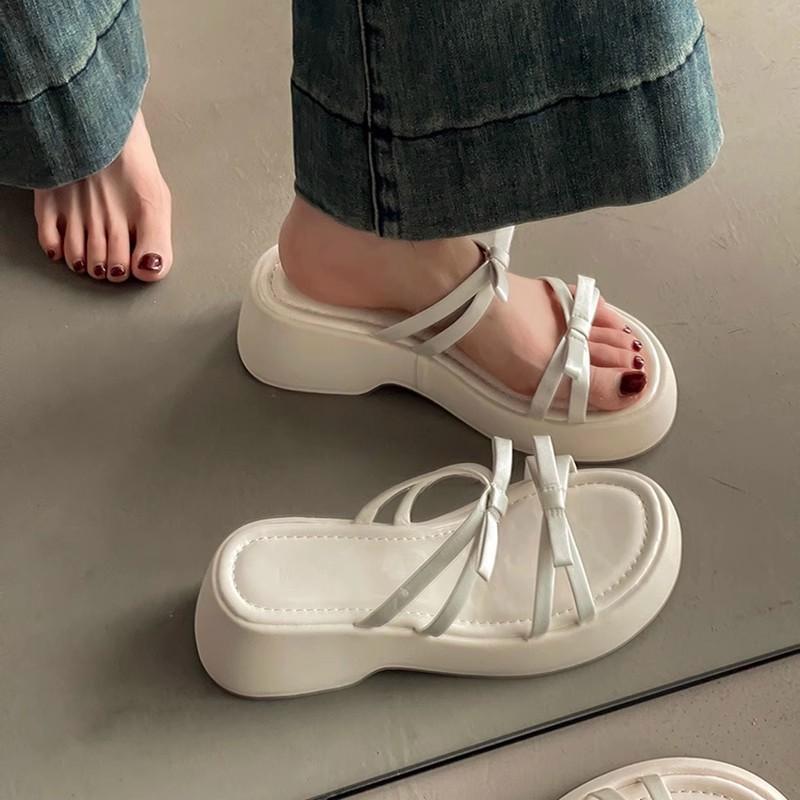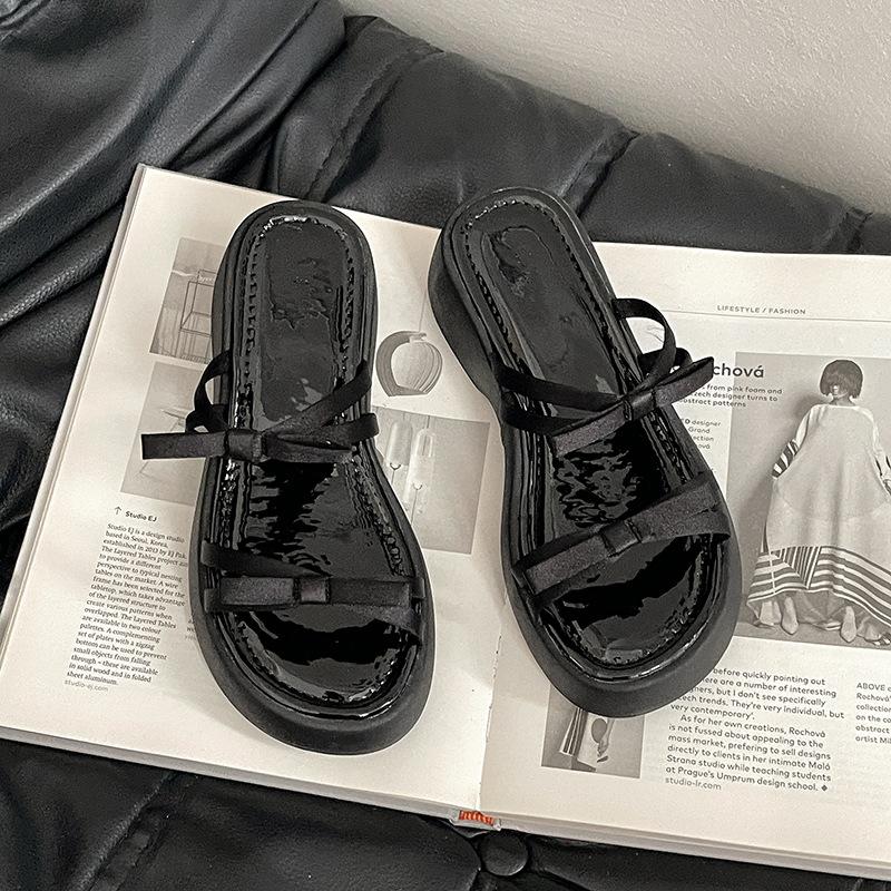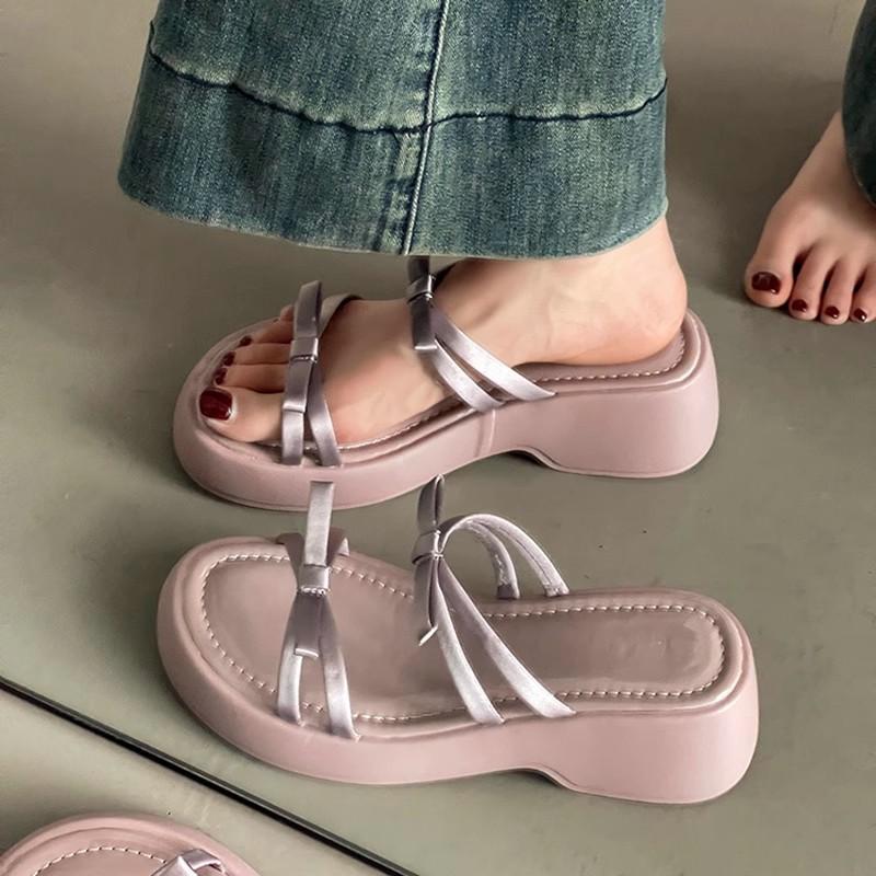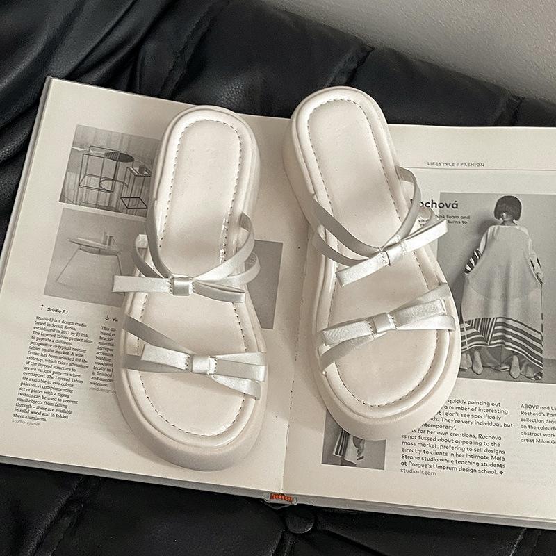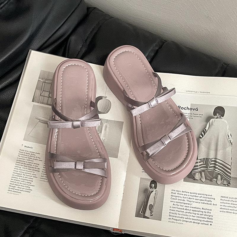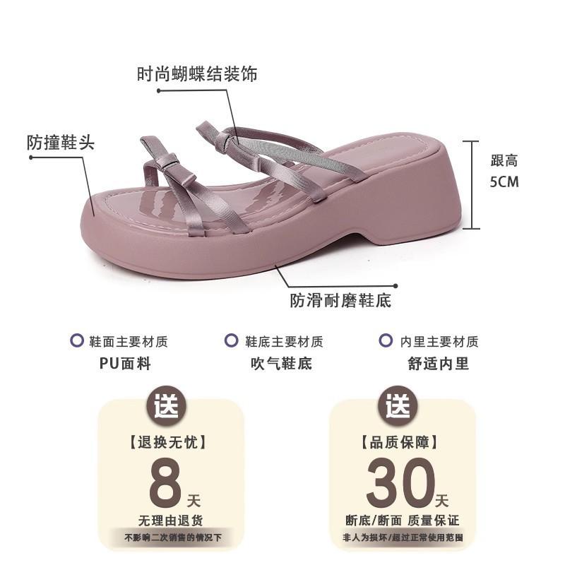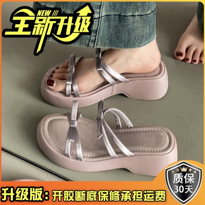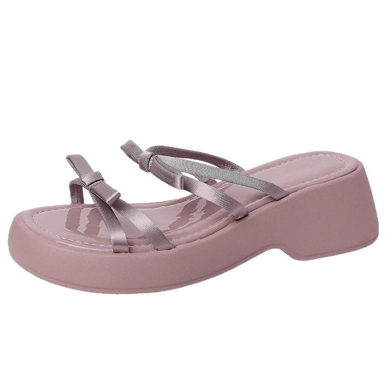 Bow thick bottom heightening women's cool slippers summer new wear heightening fairy style versatile flip-flops female tide
