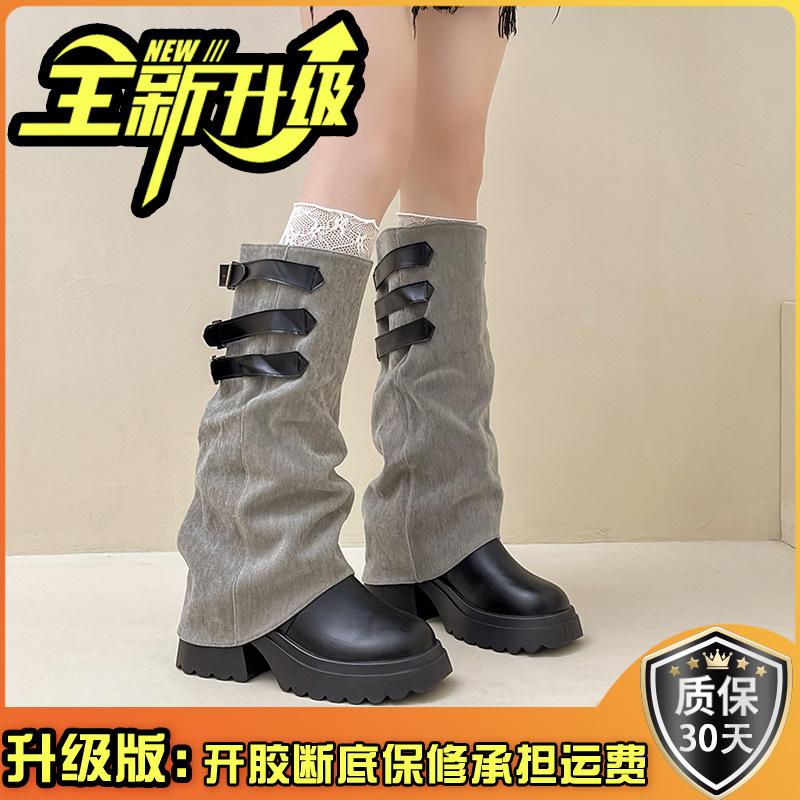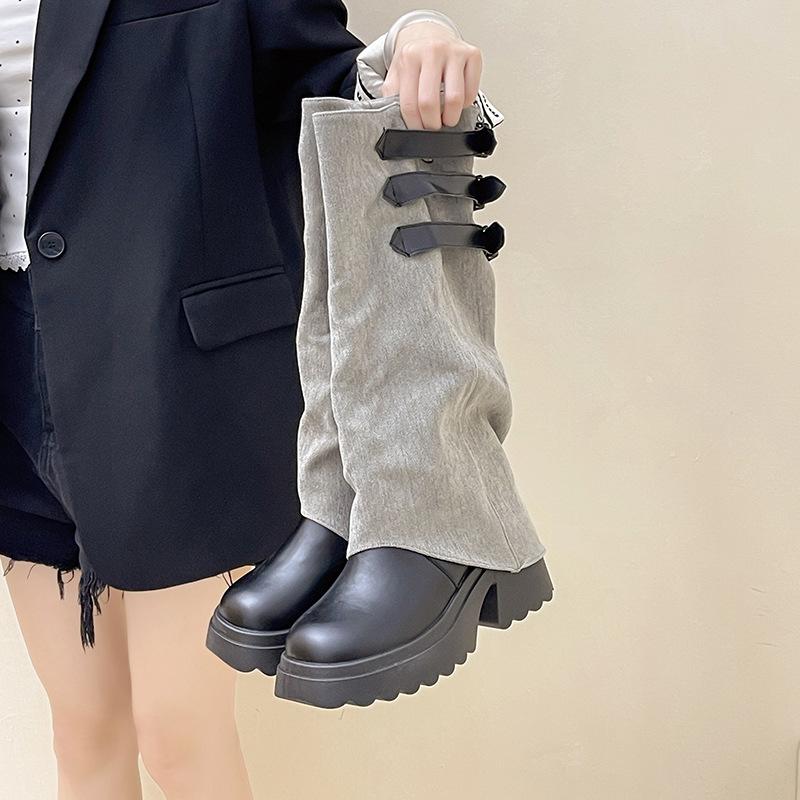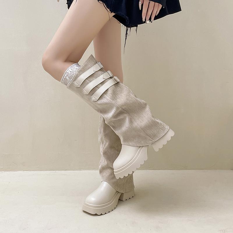 Ретро рыцарские сапоги на толстой подошве с пряжкой женские сапоги осенне-зимняя мода и тонкий дизайн темпераментные модные сапоги тренд