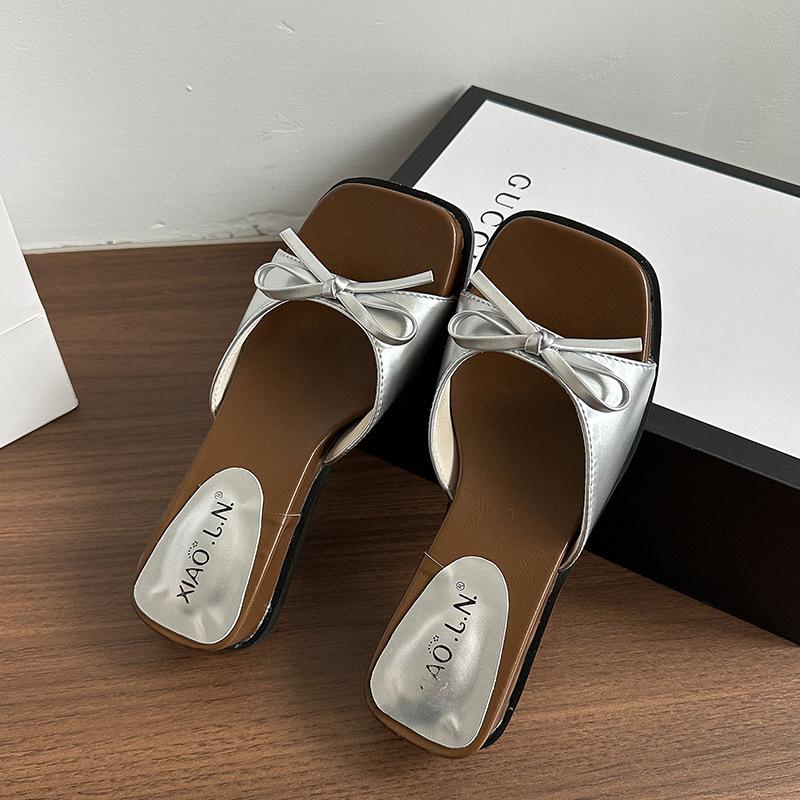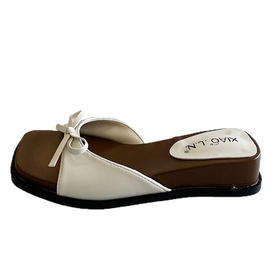 Butterfly women's knot slippers summer French fairy style fashion square head with skirt beautiful beach slope heel one word sandals