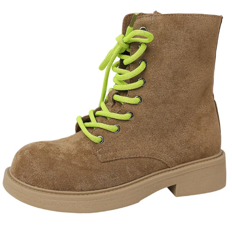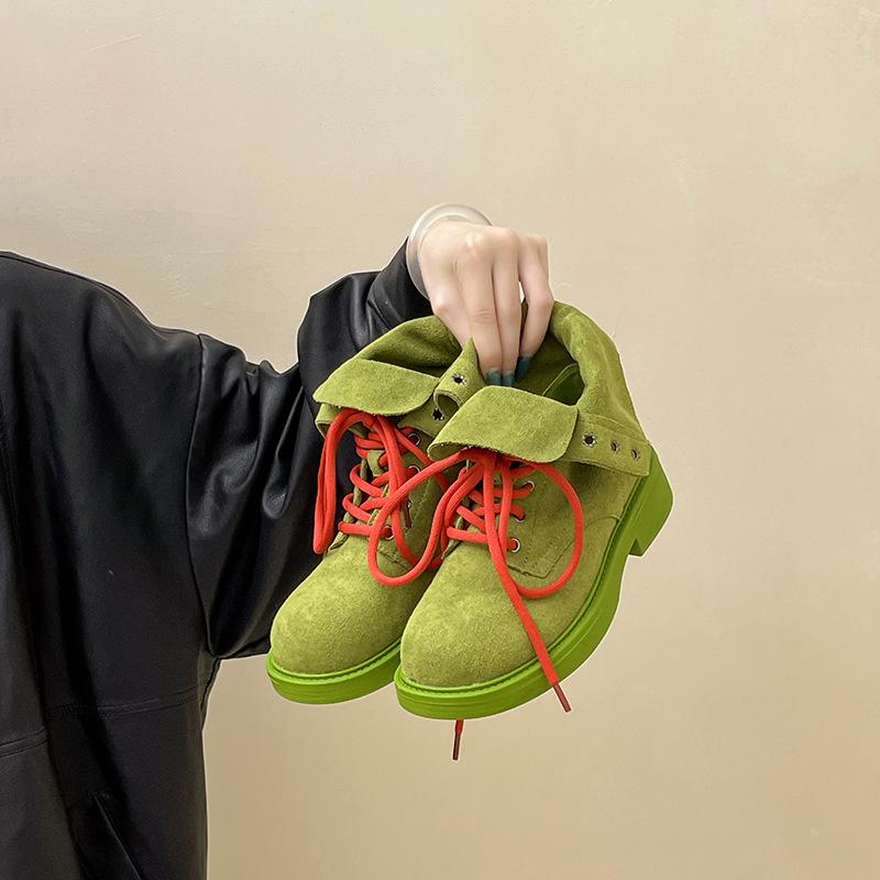 Ретро контрастные цвета платформа универсальные шнуровка квадратный каблук короткие ботинки осень и зима мода замшевый ремешок женская обувь толстый каблук Мартин
