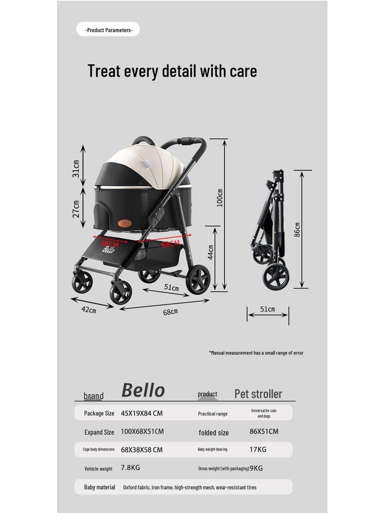 Bello Товары для питомцев Прогулочная коляска с дождевиком и съемной подушкой сиденья для собак