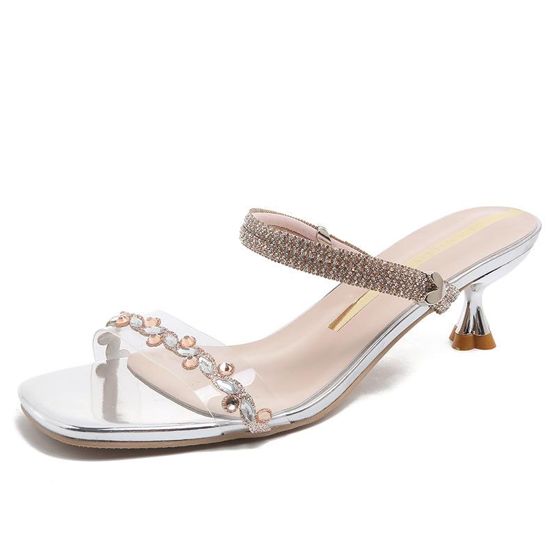 Стразы повседневные сандалии женские лето 2025 новые модели с юбкой темперамент французский с открытым носком красивые толстые каблуки крутые шлепанцы для улицы