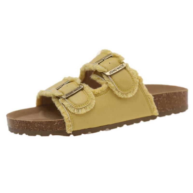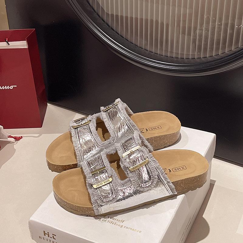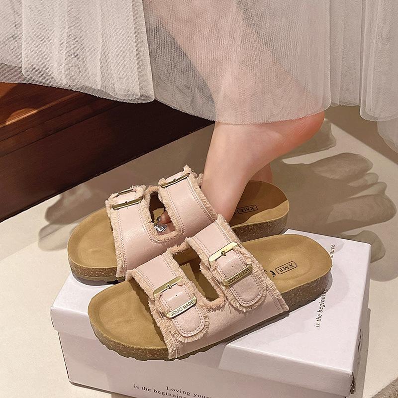 Повседневная верхняя одежда, мягкая подошва, тапочки Boken, лето 2025, новинка, двубортные тапочки на одно слово, женские, ретро, универсальная пляжная обувь