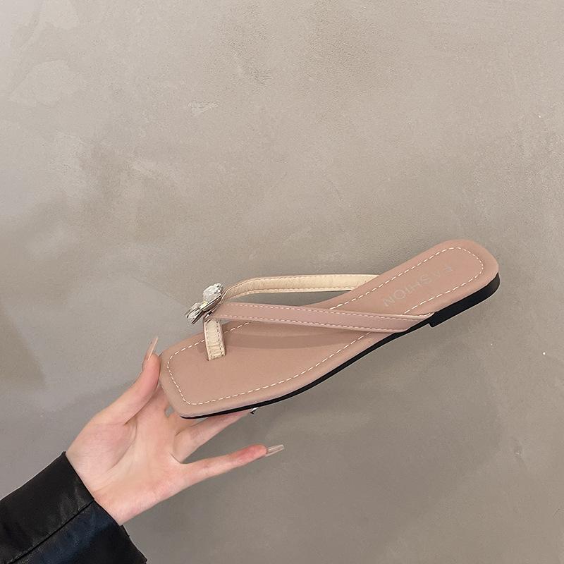 Mezzanine cool slippers women's summer fashion outside flip-flops French silver flat-bottomed slippers women's rhinestone Roman cool slippers