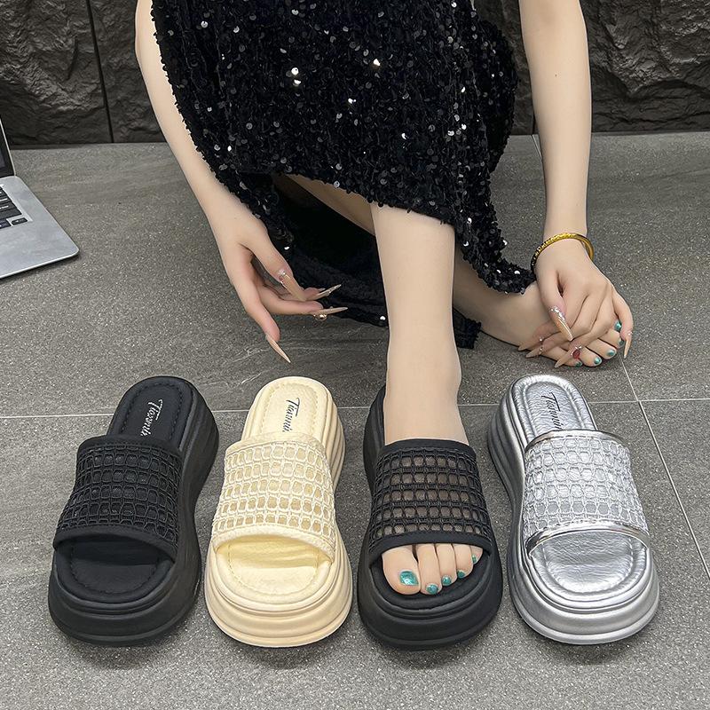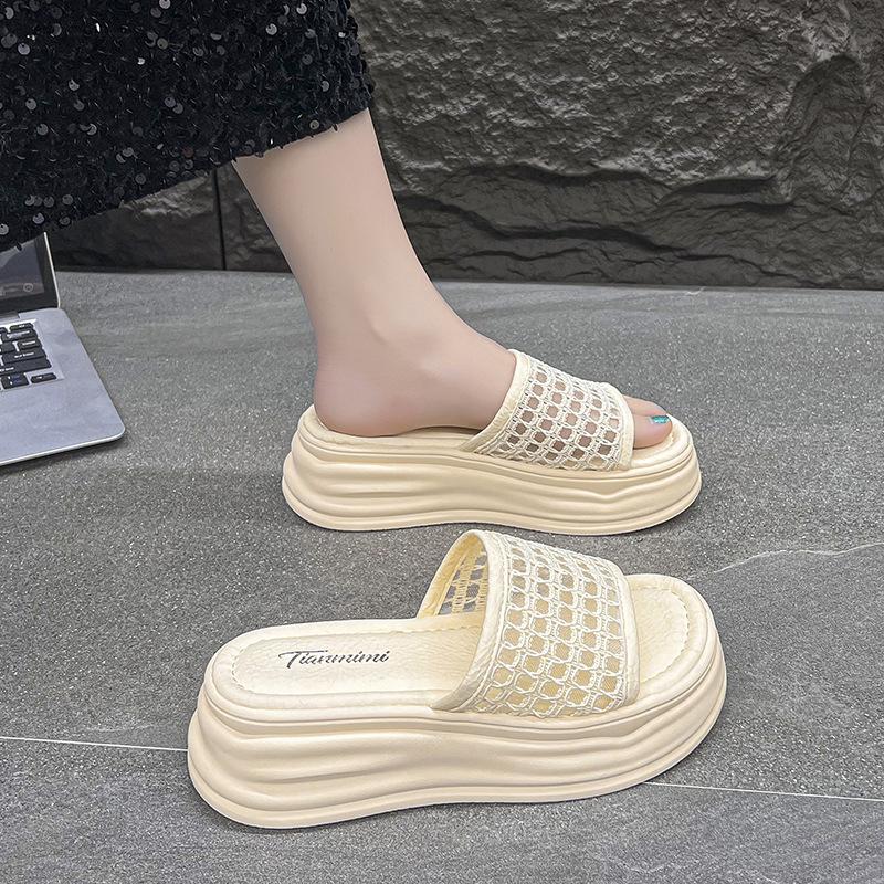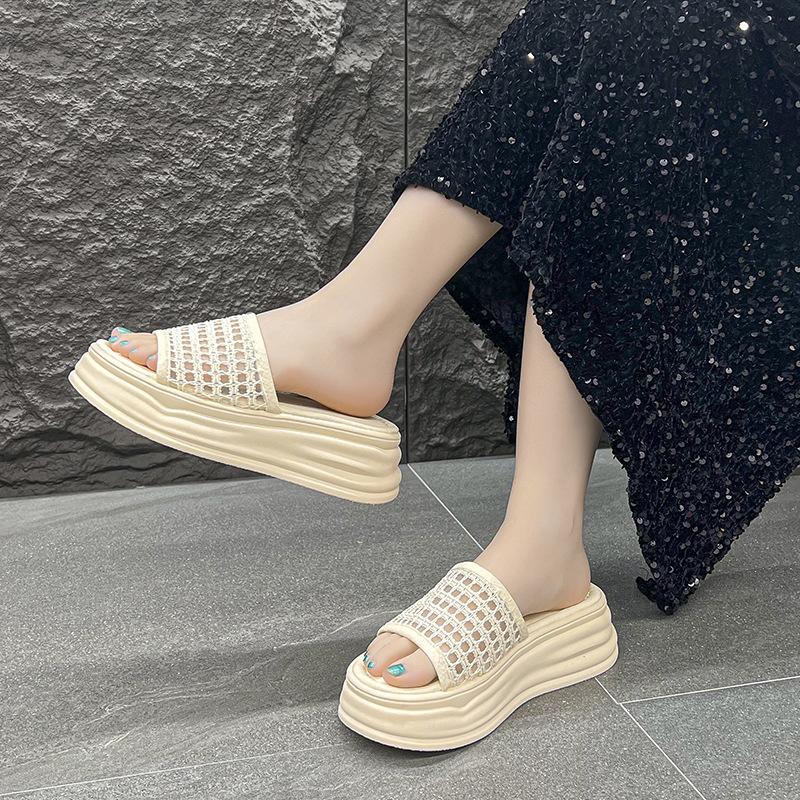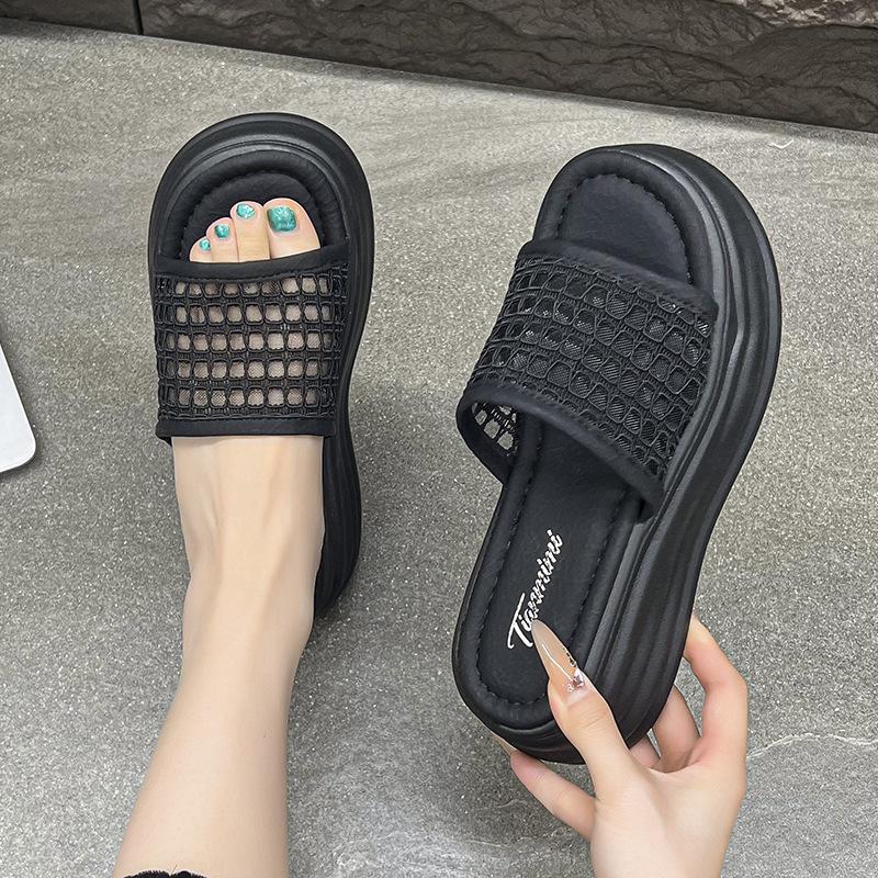 Баотоу полутапочки женские летние 2025 новинка сетчатый верх толстая подошва высота маффина увеличение с юбкой супер огонь крутые тапочки