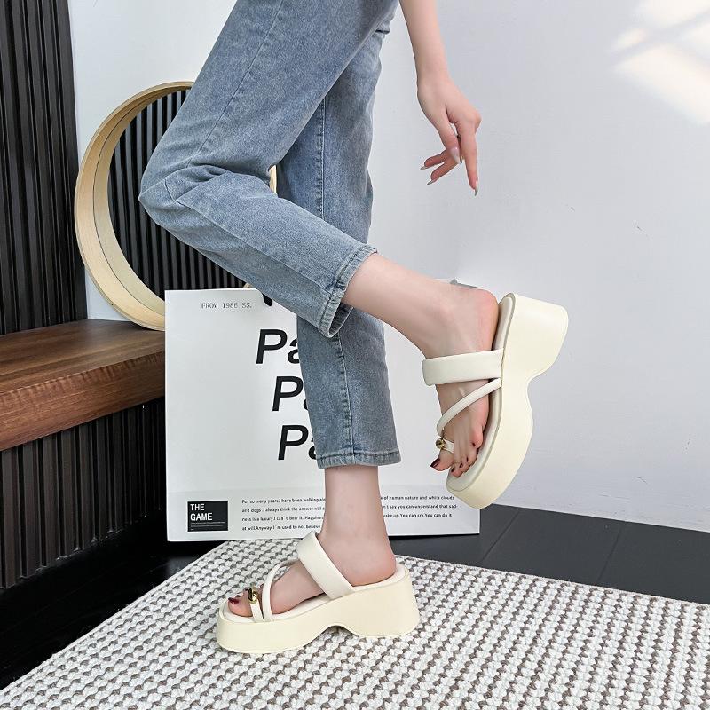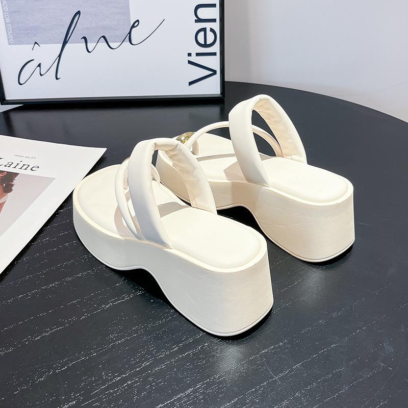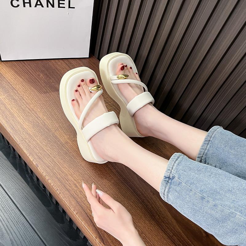 thick-soled heightening set of toe sandals for women's beach vacation style summer new slippers for women to wear muffin waterproof table slippers
