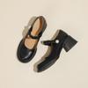 Mary Jane high heels women's 2025 early spring new light mouth pearl word with thick heel single shoes black small leather shoes