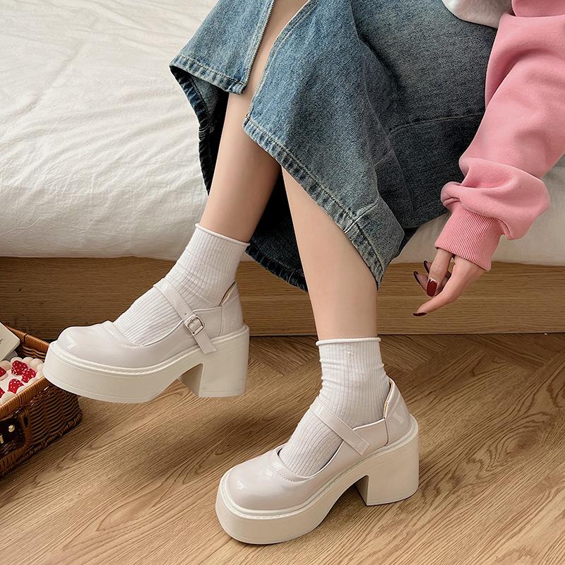 2025 new comfortable and versatile sweet and cool thick heel high heel small leather shoes platform heightening French retro Mary Jane trendy shoes