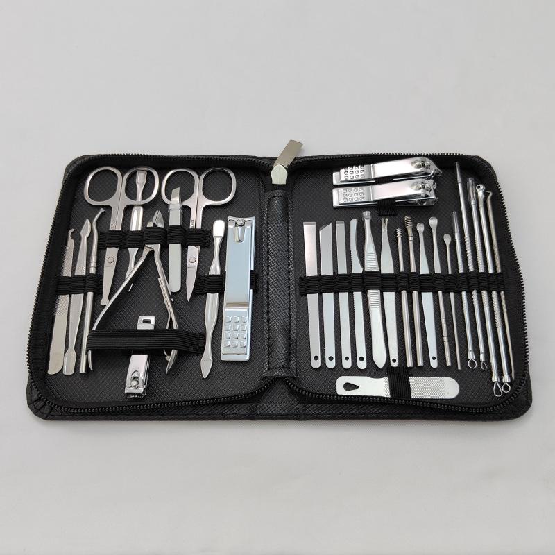 Набор для маникюра и педикюра из 30 предметов из нержавеющей стали с кусачками для ногтей, пинцетом для бровей и инструментами для удаления черных точек