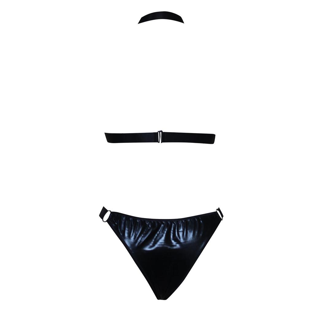 Европейский и американский черный лакированный кожаный комплект халтер-белья: Сексуальный и соблазнительный с вырезами