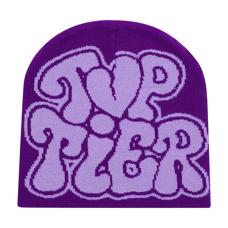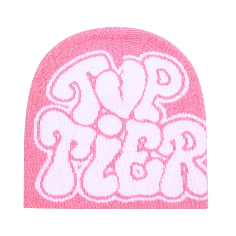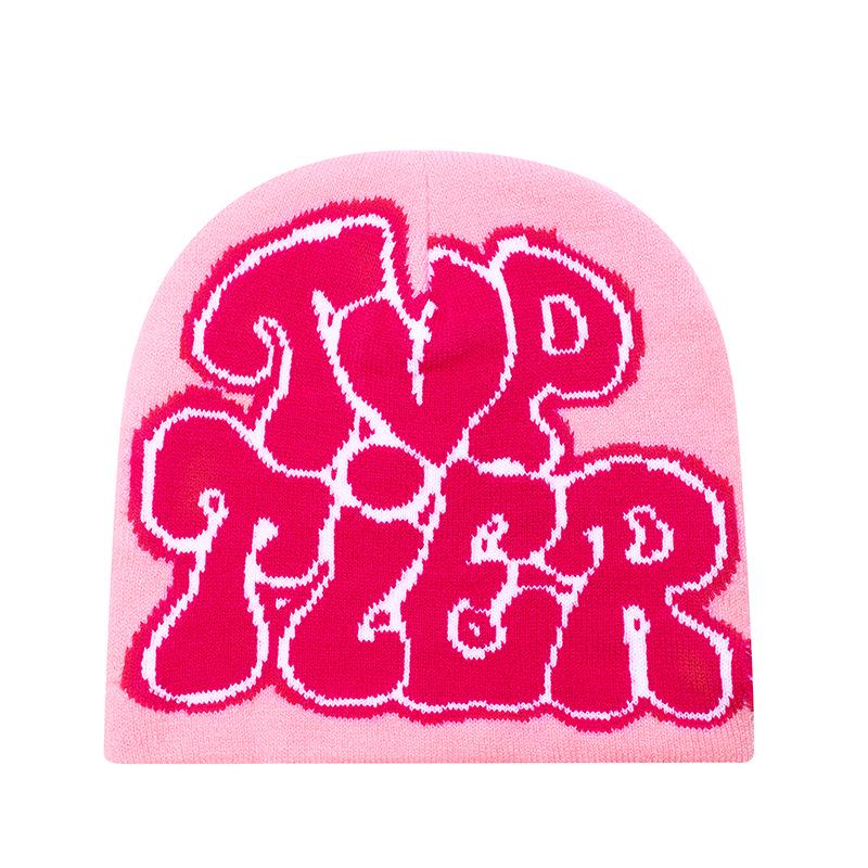 Зимняя вязаная шапка-бини с жаккардовым узором в виде букв - Теплая, непродуваемая, универсальная модная шерстяная шапка