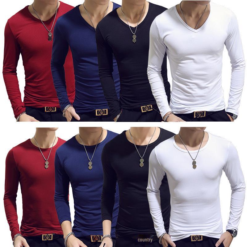 Мужская приталенная футболка с длинным рукавом в стиле милитари - Разноцветная, Однотонная, Пуловер с круглым вырезом (Весенне-осенняя коллекция)