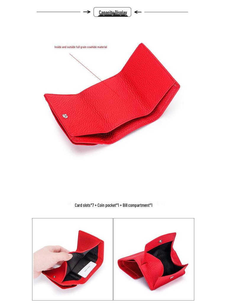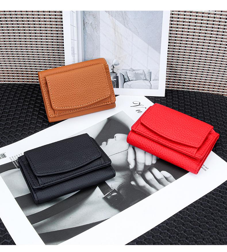 Компактный трехслойный кошелек из натуральной кожи в японско-корейском стиле