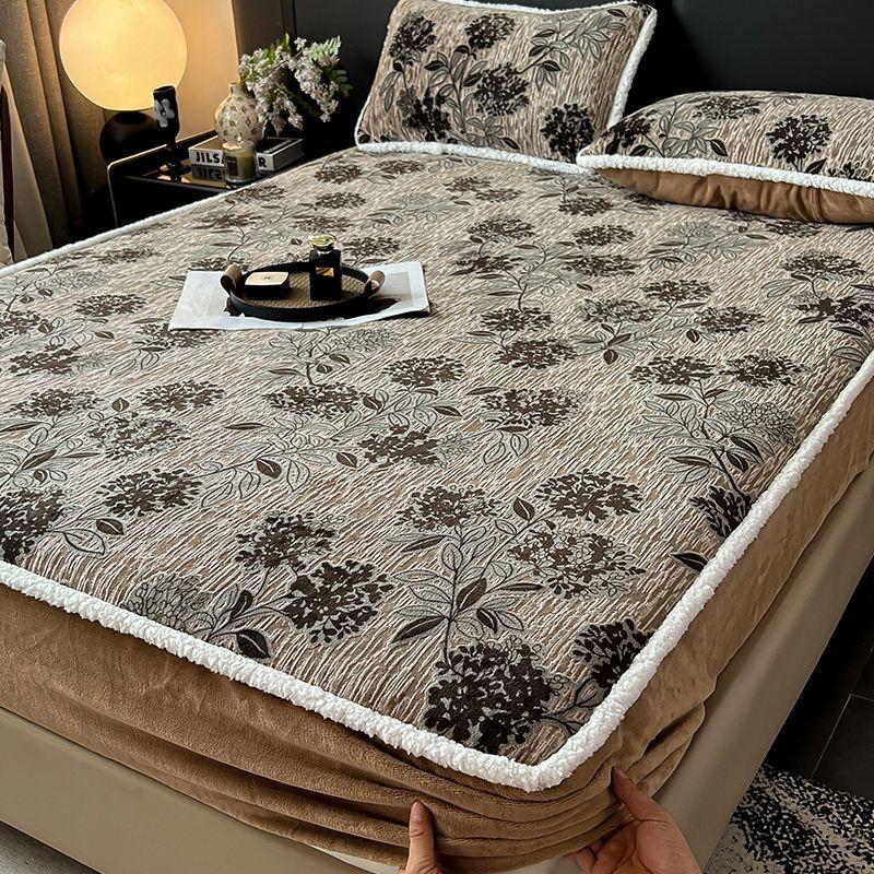 Домашняя резная простыня на резинке из молочного бархата, цельная, зимняя, плюс бархатный наматрасник-чехол, полное покрытие кровати — купить товар онлайн с бесплатной доставкой по всему миру!