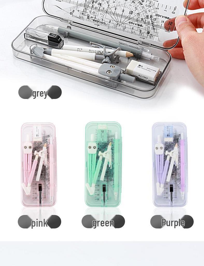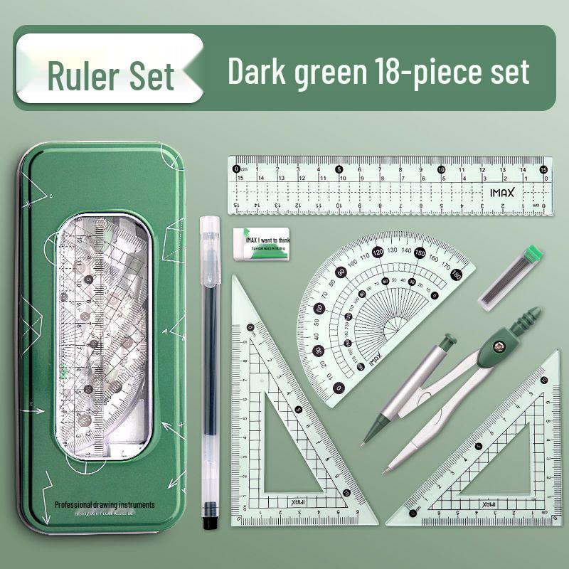 Набор металлических циркулей и линеек для начальной школы - Включает циркуль для рисования окружностей, визитницу, линейку в коробке и чертежные инструменты