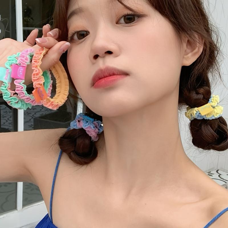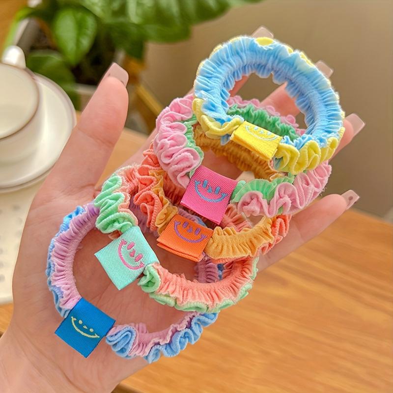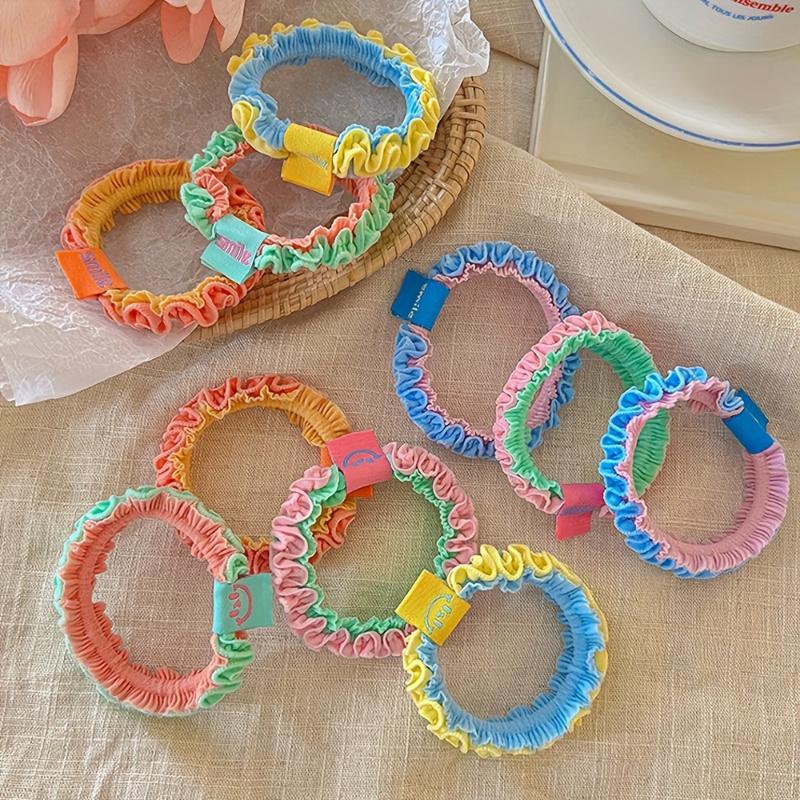 5 шт. милых плиссированных резинок для волос конфетных цветов с кружевной отделкой - эластичные резинки для стильной прически, идеальный подарок на День святого Валентина