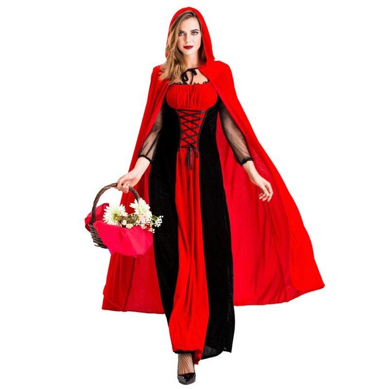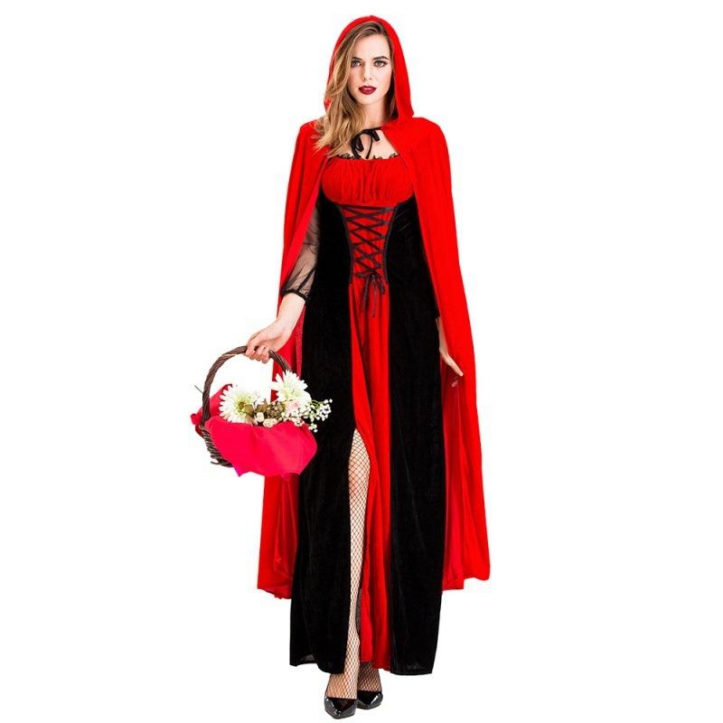 Новый костюм на Хэллоуин, костюм королевы вампиров для ночного клуба, красный и черный с плащом, костюм Красной Шапочки