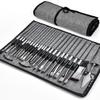 Набор кистей из 24 штук: Холщовый рулон для переноски с серебристо-серыми нейлоновыми ручками для живописи гуашью и акварелью