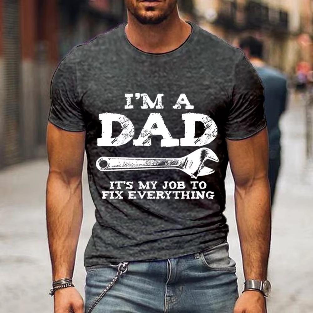 Я папа Футболка Мужская Винтажная Футболка с Гаечным Ключом Это Моя Работа Все Исправлять Принт Футболка с Коротким Рукавом Повседневная Уличная Одежда Camisete