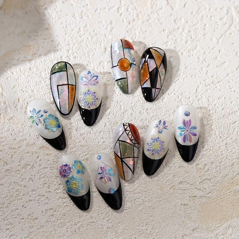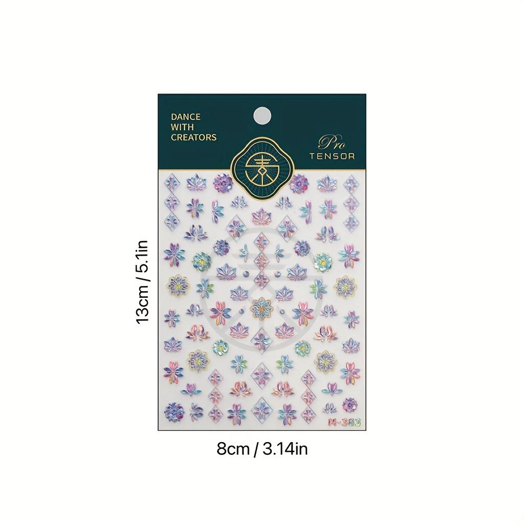 Красочные Богемные 3D Желейные Наклейки для Нейл-Арта - Цветочные и Геометрические Дизайны с Голографическими Блестками, Самоклеящиеся Наклейки для Ногтей для DIY Маникюра