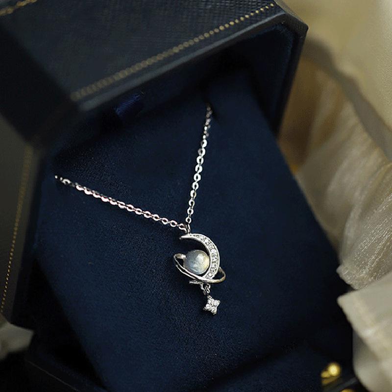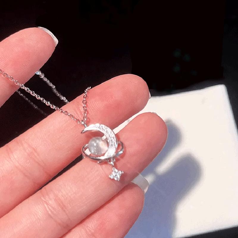 Yi Xuan Переливающееся ожерелье из лунного камня в виде звезды и луны - Модная цепочка для ключицы 2025.