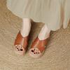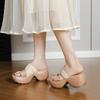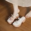 Wood grain thick heel thick sole cross with slippers women's summer new holiday slope heel waterproof table soft sole Roman sandals
