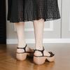 Wood grain thick heel thick sole cross with slippers women's summer new holiday slope heel waterproof table soft sole Roman sandals — купить товар онлайн с бесплатной доставкой по всему миру!