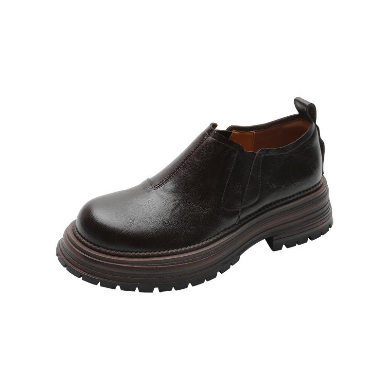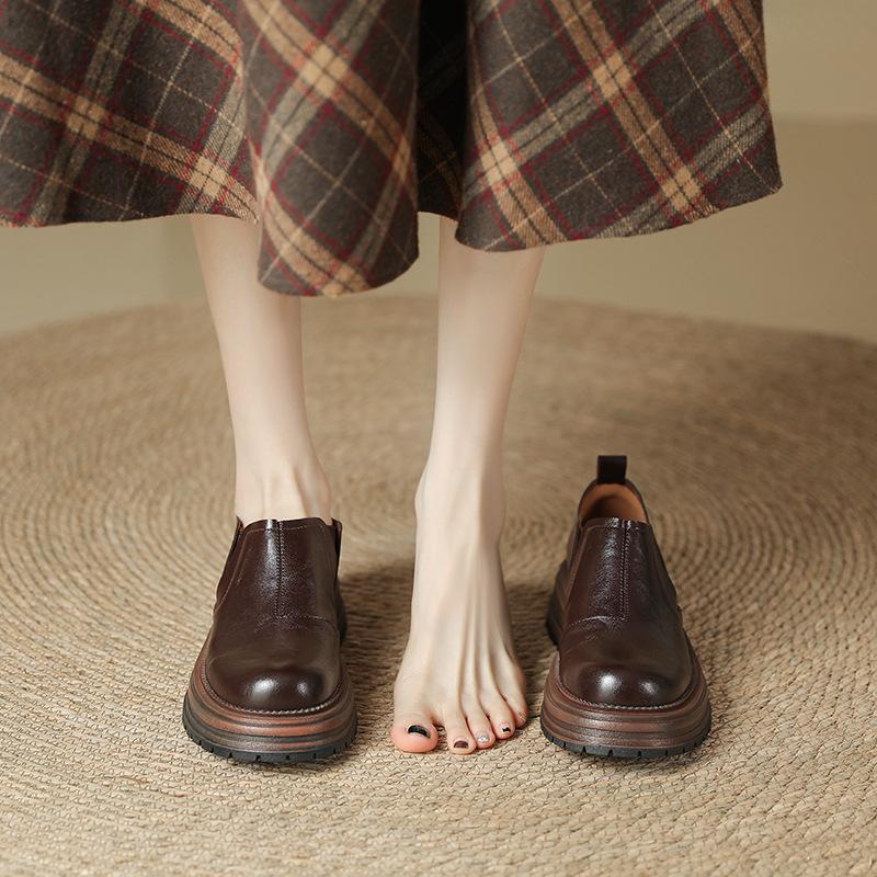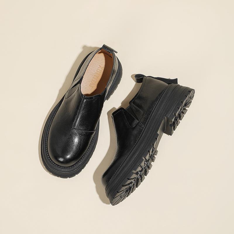 Мягкие и удобные лоферы женские 2025 новые британский стиль платформа толстый каблук один педаль круглый носок средний каблук маленькие кожаные туфли женские