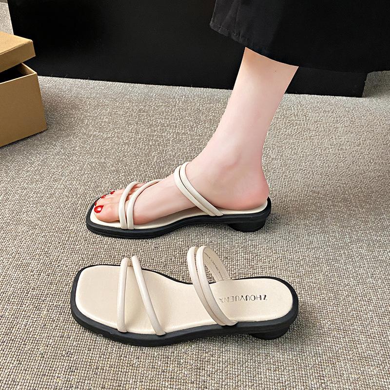 Французский вечерний бриз однословные тапочки женские летние 2025 новые корейская версия фея ретро ремешок плоские сандалии