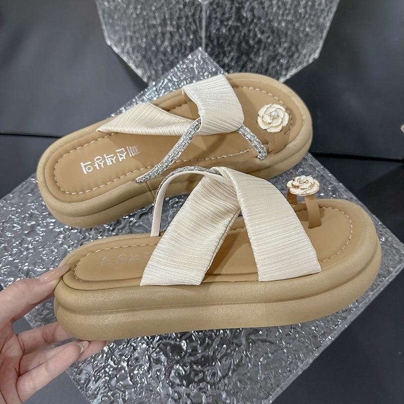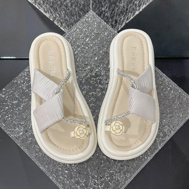 Французские тапочки в стиле феи с толстой подошвой, летние новинки 2025 года, высококачественные повседневные сандалии с толстой подошвой и закрытым носком для девочек.
