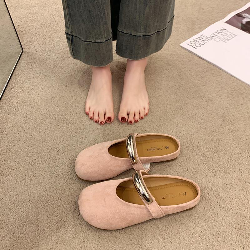 Французские полутапочки одинарные туфли женские весна-лето 2025 новые туфли Мэри Джейн с металлической пряжкой нишевая вечерняя нежная ветерка полутапочки