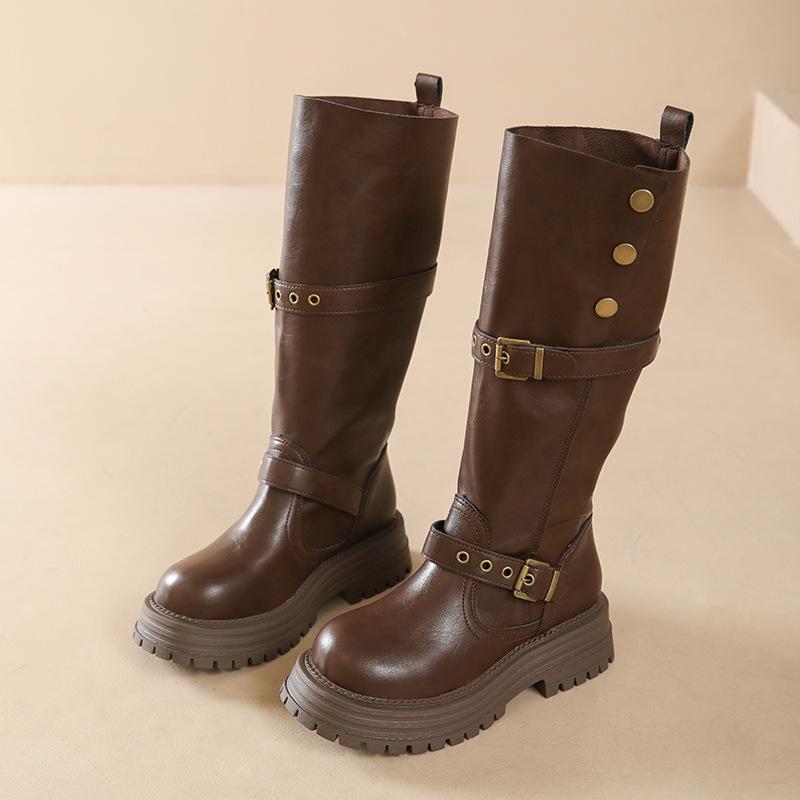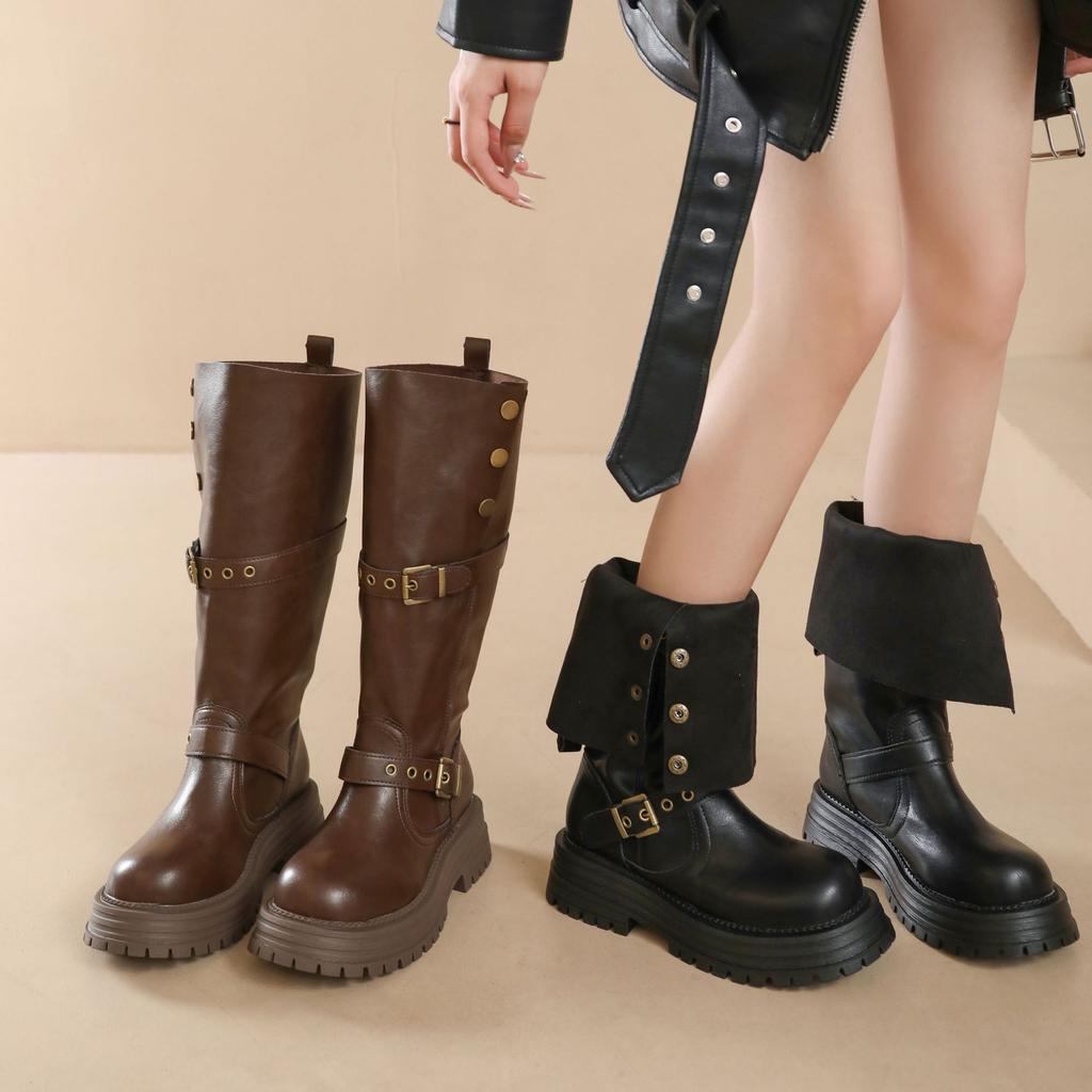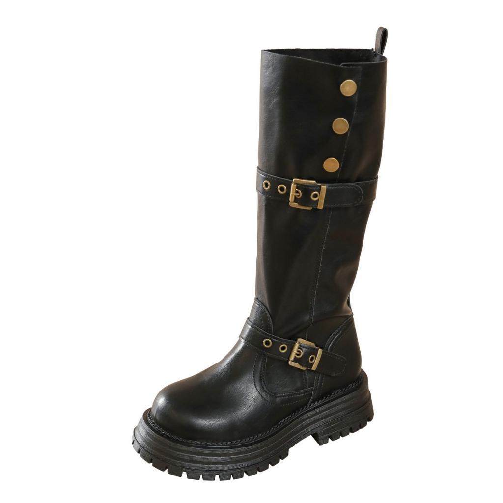Черные ретро ботинки на толстом каблуке и платформе в британском стиле женские 2025 осень и зима новые ботинки высокие и стройнящие ботфорты