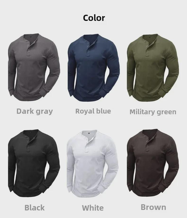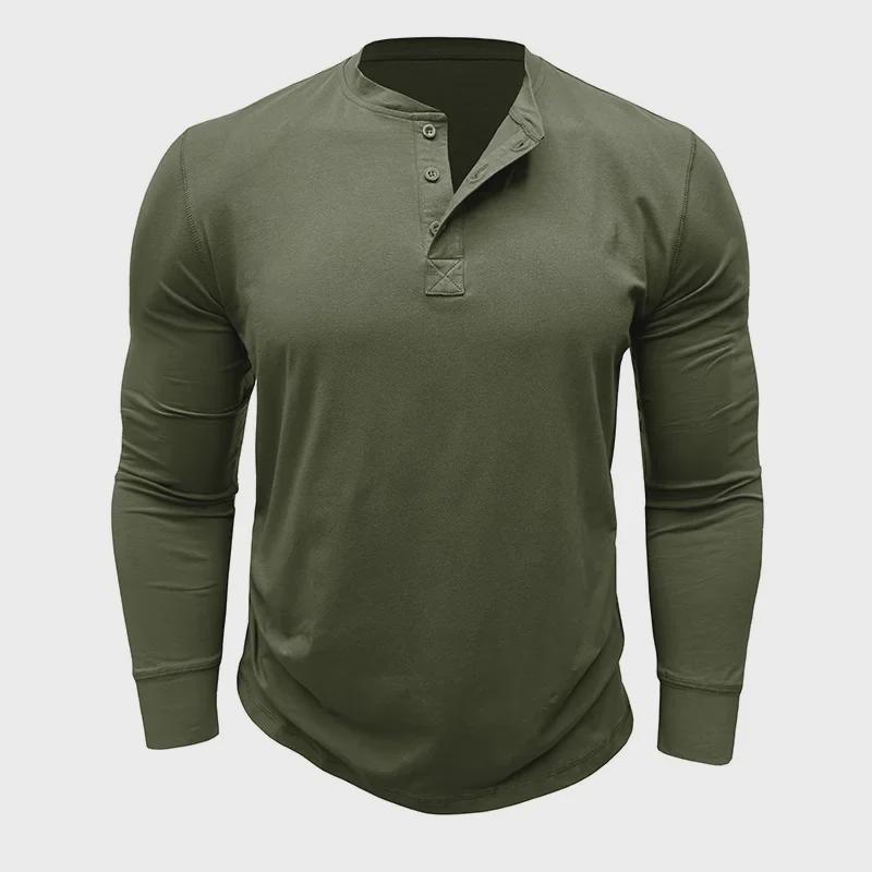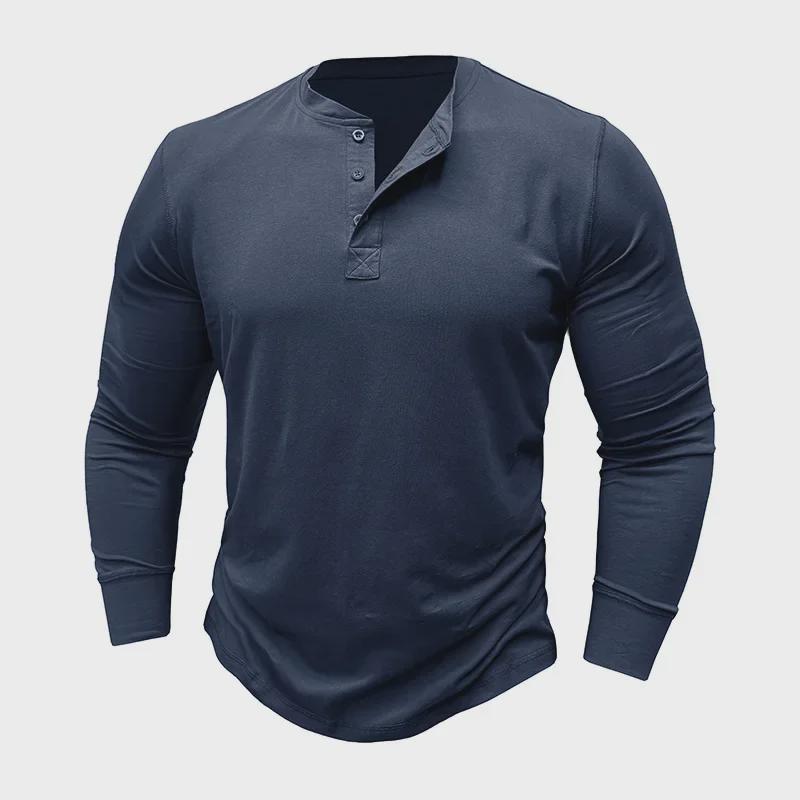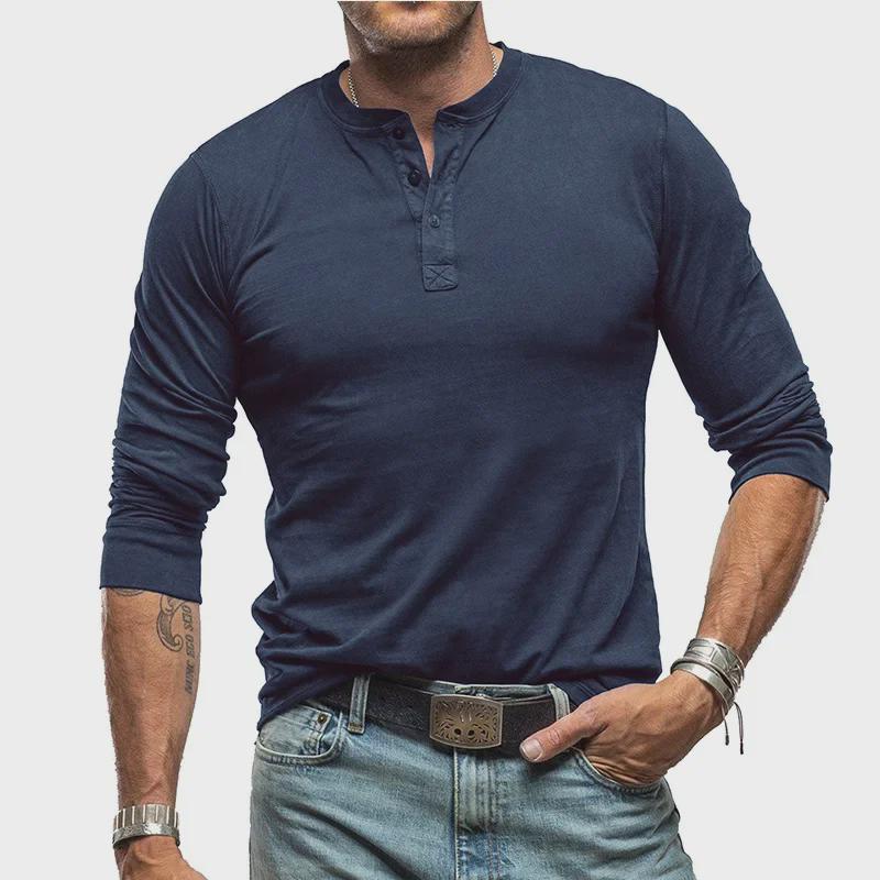 Мужская хлопковая рубашка-хенли с длинным рукавом — европейский и американский стиль