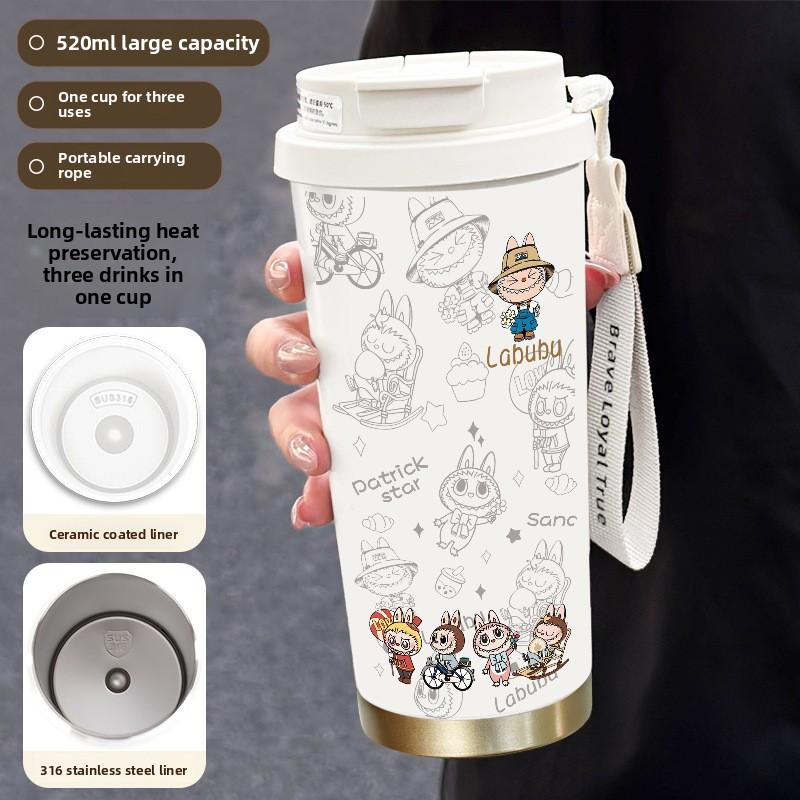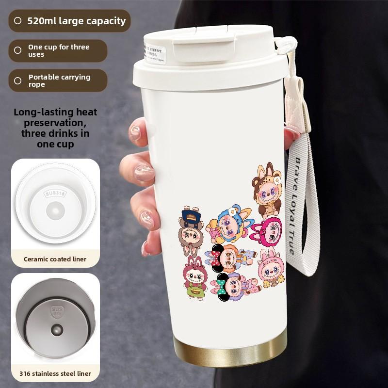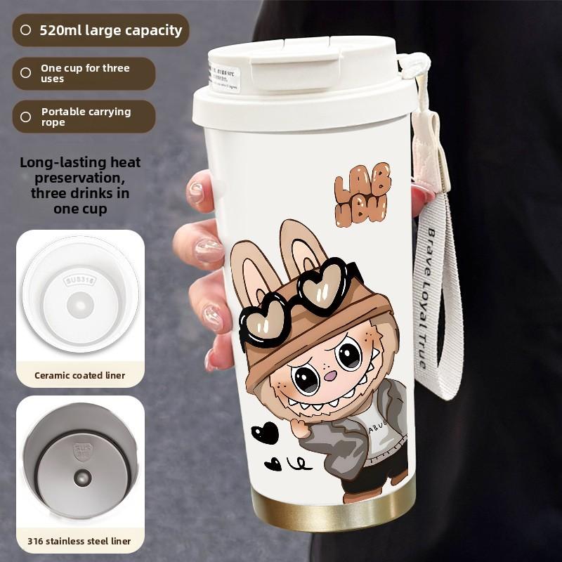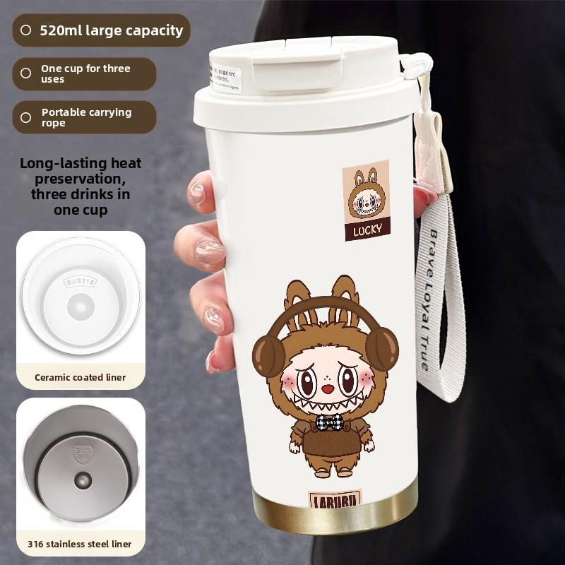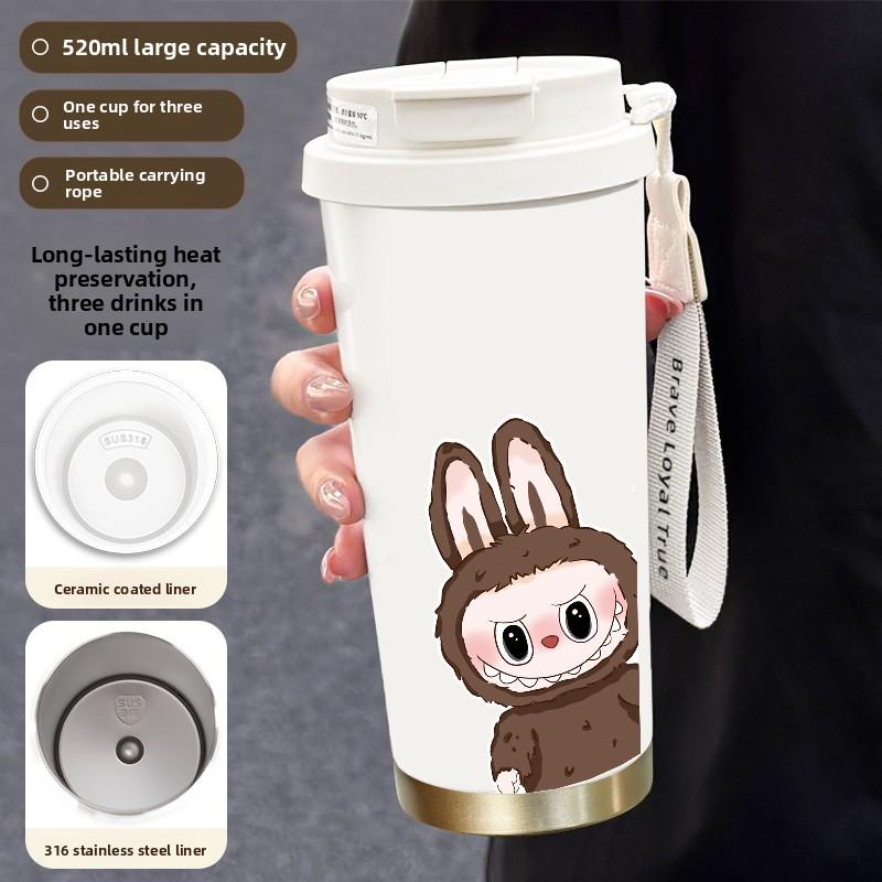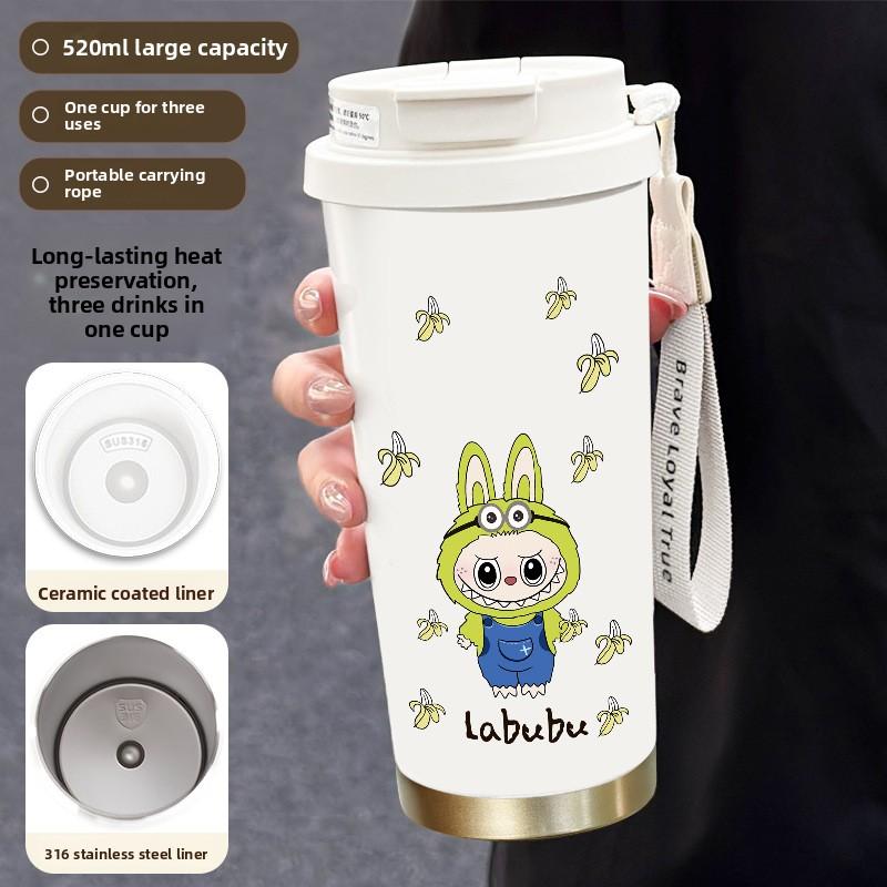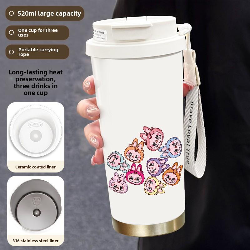 Милая чашка-термос большой вместимости, высокая ценность, чашка для воды из нержавеющей стали 316, портативная веревка, чашка для кофе