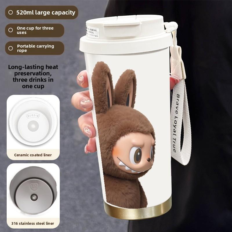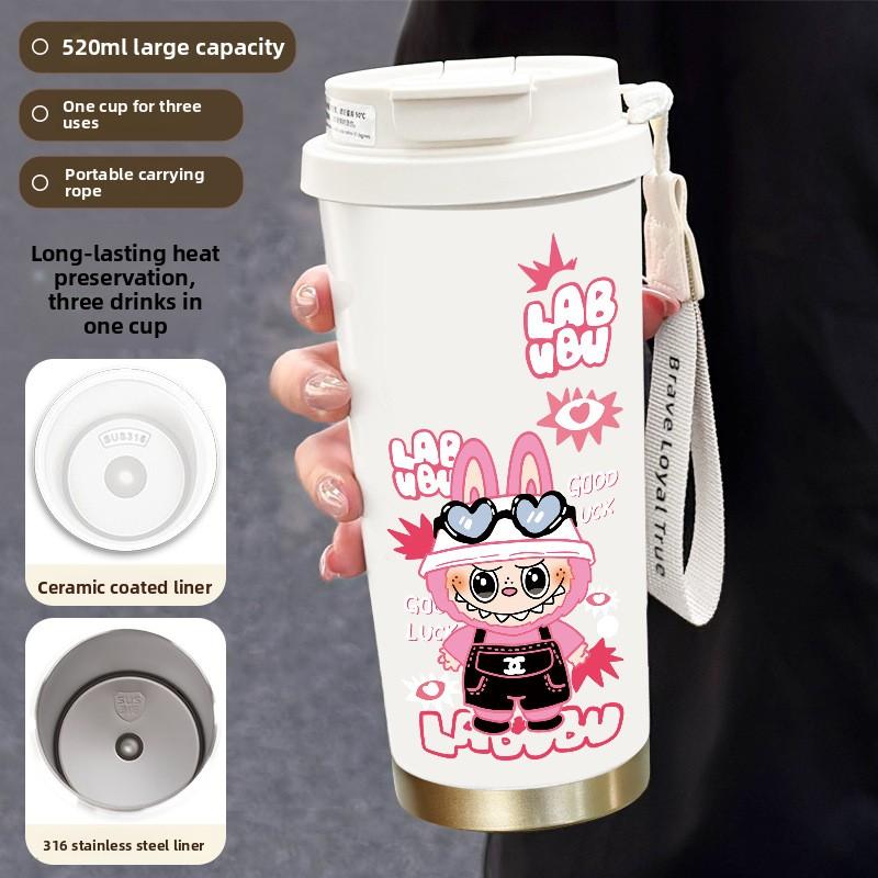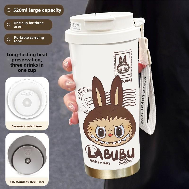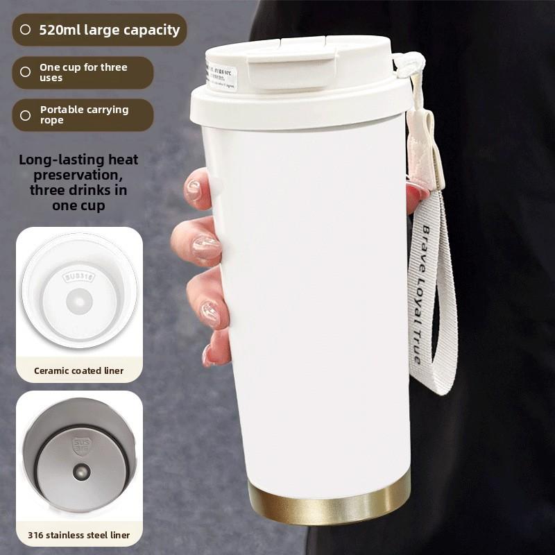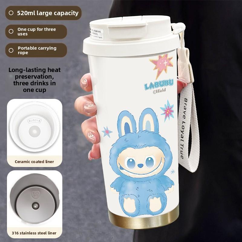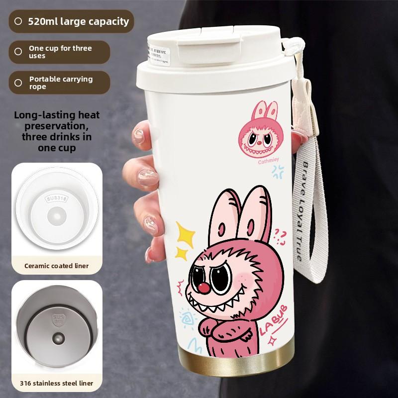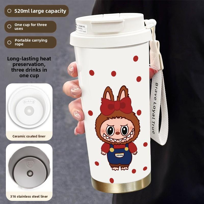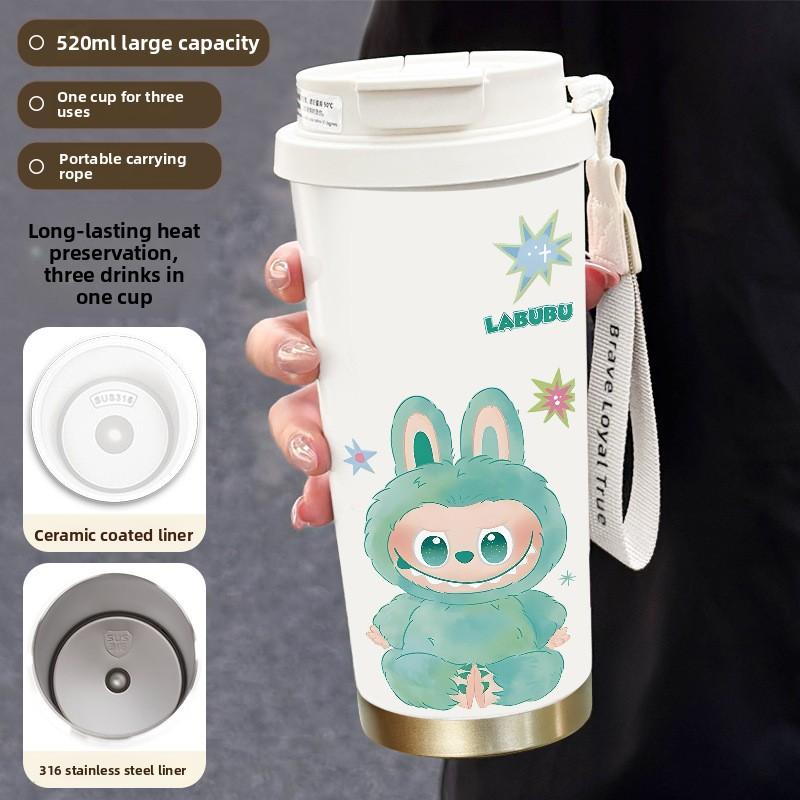 Милая чашка-термос большой вместимости, высокая ценность, чашка для воды из нержавеющей стали 316, портативная веревка, чашка для кофе