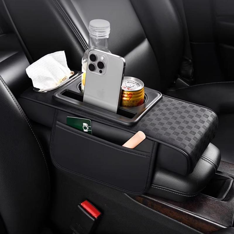 Универсальная подушка-подлокотник на центральную консоль автомобиля, чехол для подлокотника с 2 подстаканниками и коробкой для салфеток, подушка-подлокотник из ПУ кожи для автомобиля