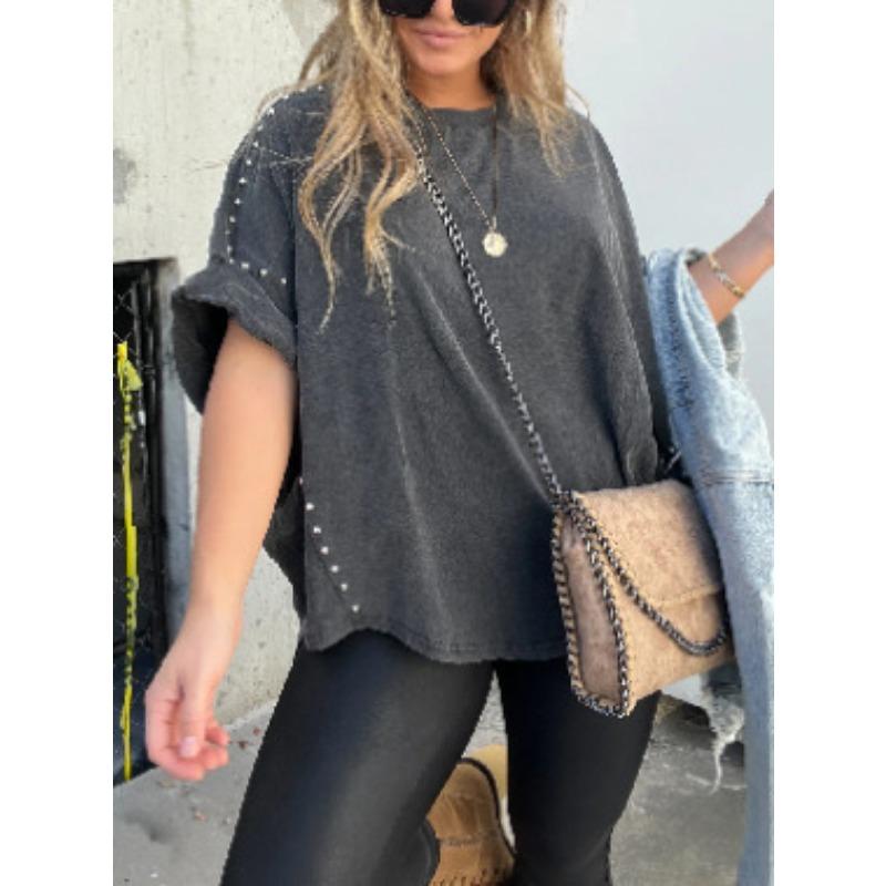 DAFIFY Женские модные повседневные летние весенние однотонные блузки и рубашки с короткими рукавами и круглым вырезом с принтом