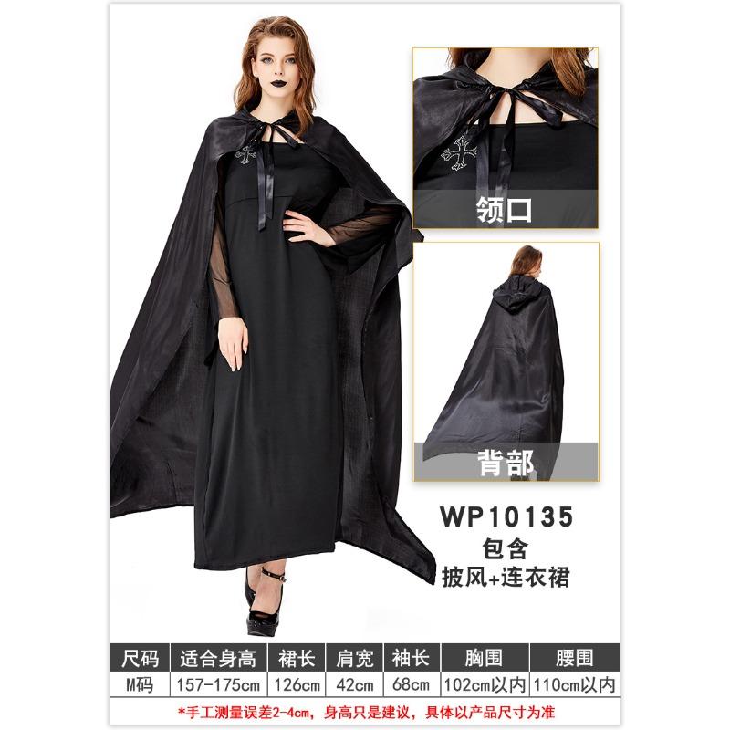 Костюм для тематической вечеринки для взрослых женщин большого размера, платье ведьмы, темное платье, набор с плащом