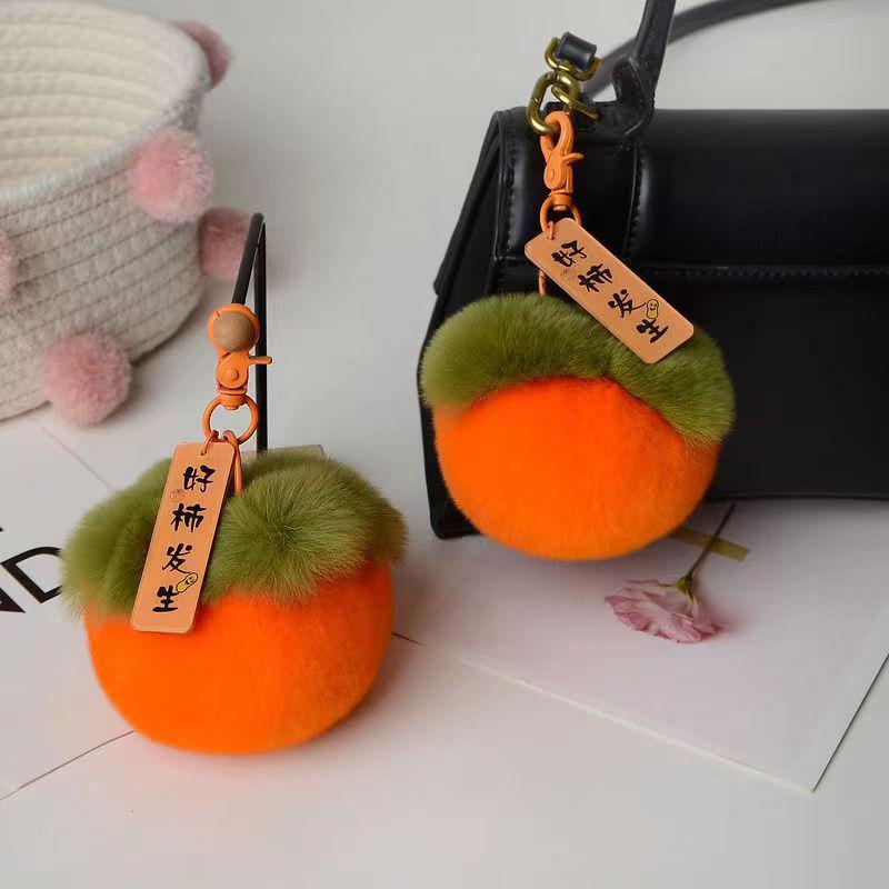 Искусственный мех кролика, симпатичные мини-брелки с изображением хурмы для женщин, плюшевые брелки для ключей из меха кролика Рекс, сумка для украшения автомобиля, подвеска, подарок