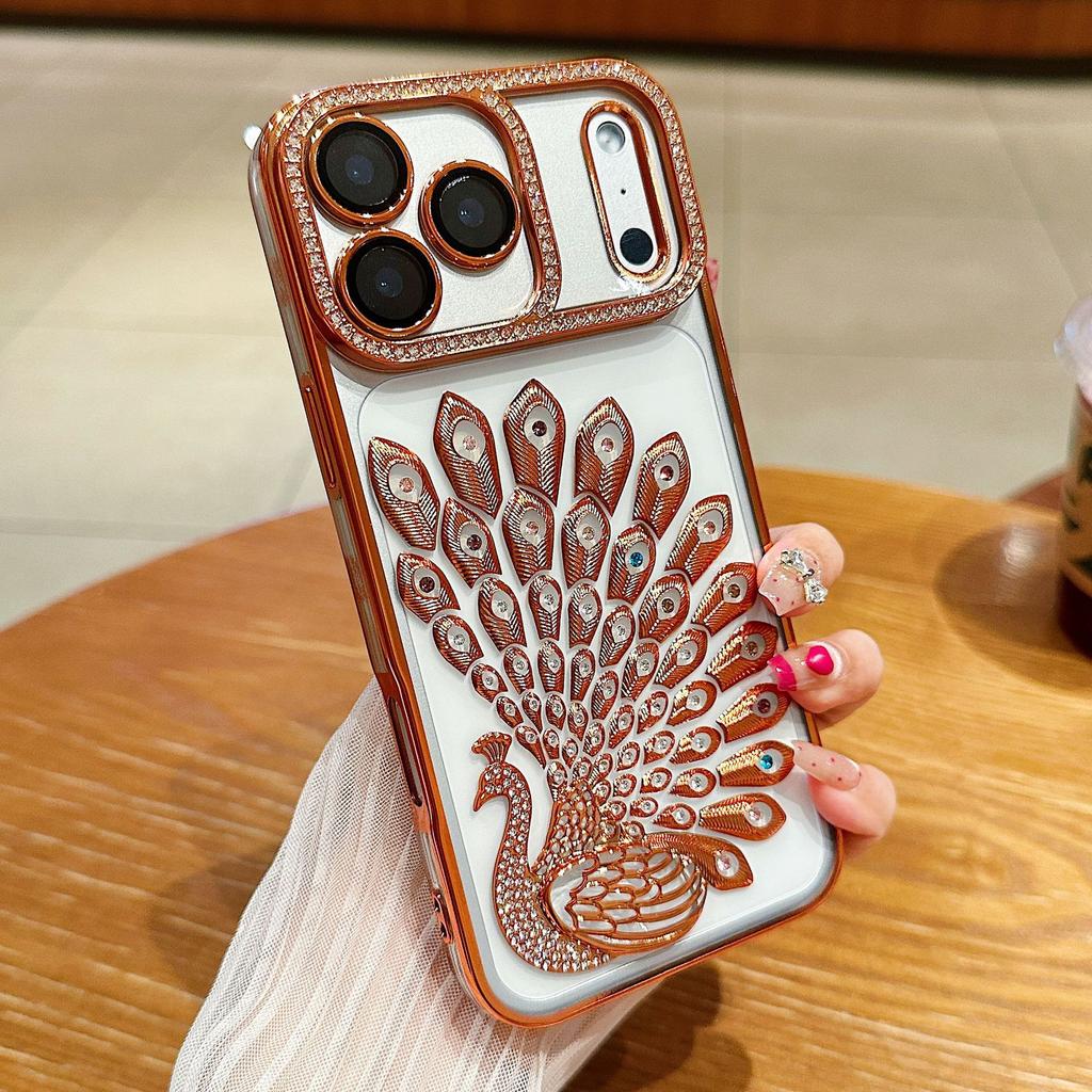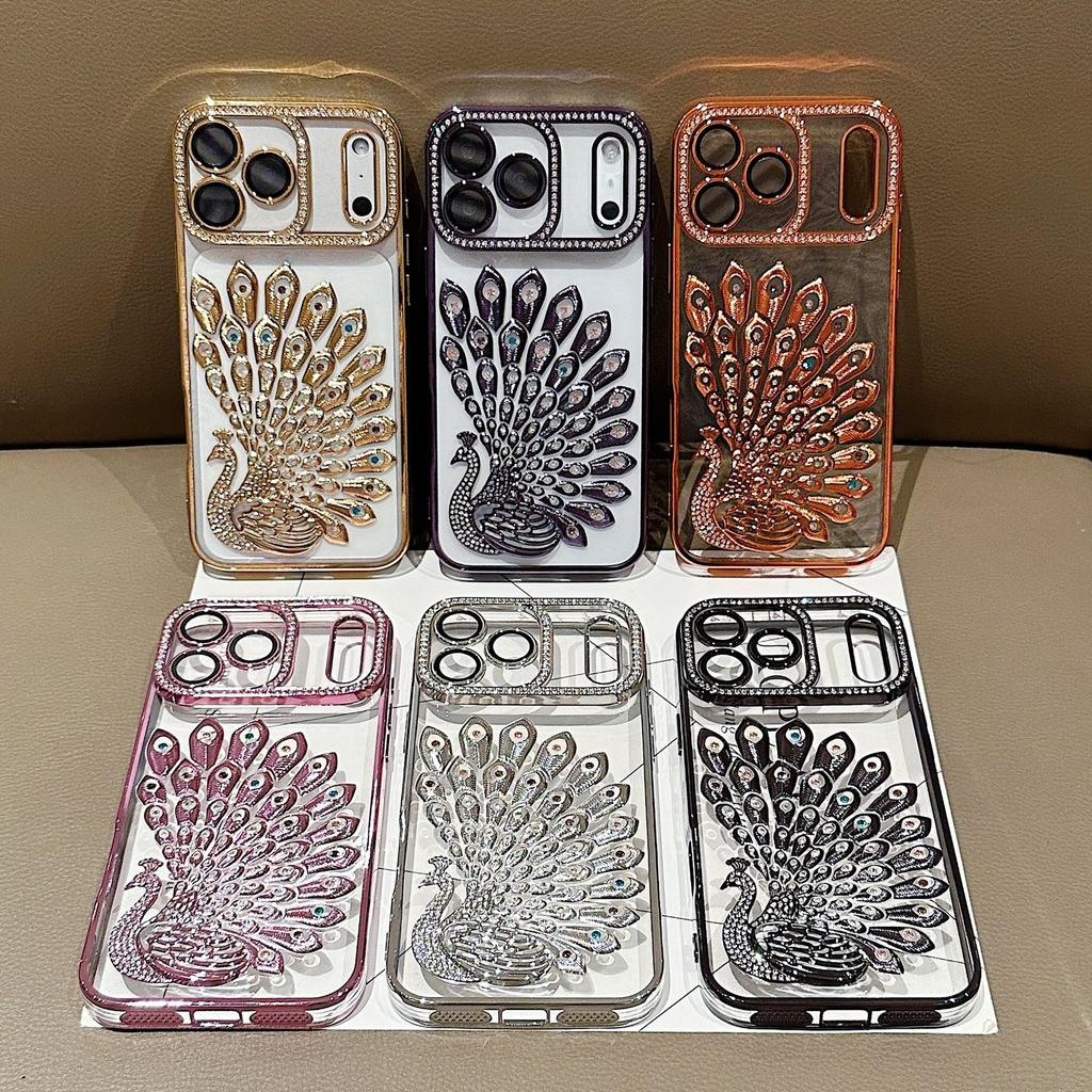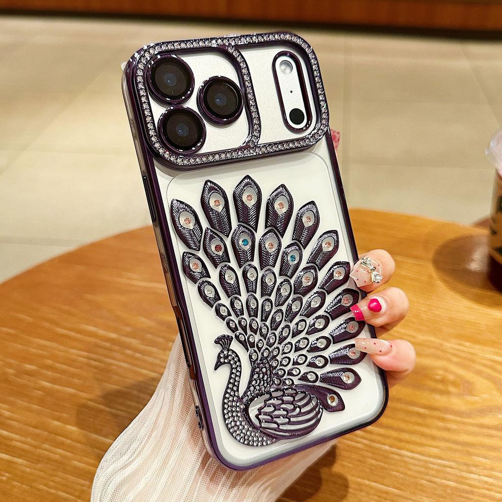 Подходит для Apple 17 ProMax Блестящий Павлин Мобильный Чехол Стразы iPhone 16 Новый Высококлассный Сенсорный 15 Защитный Чехол