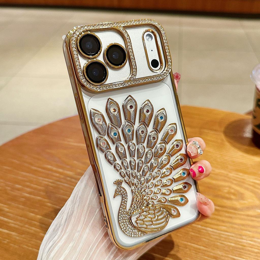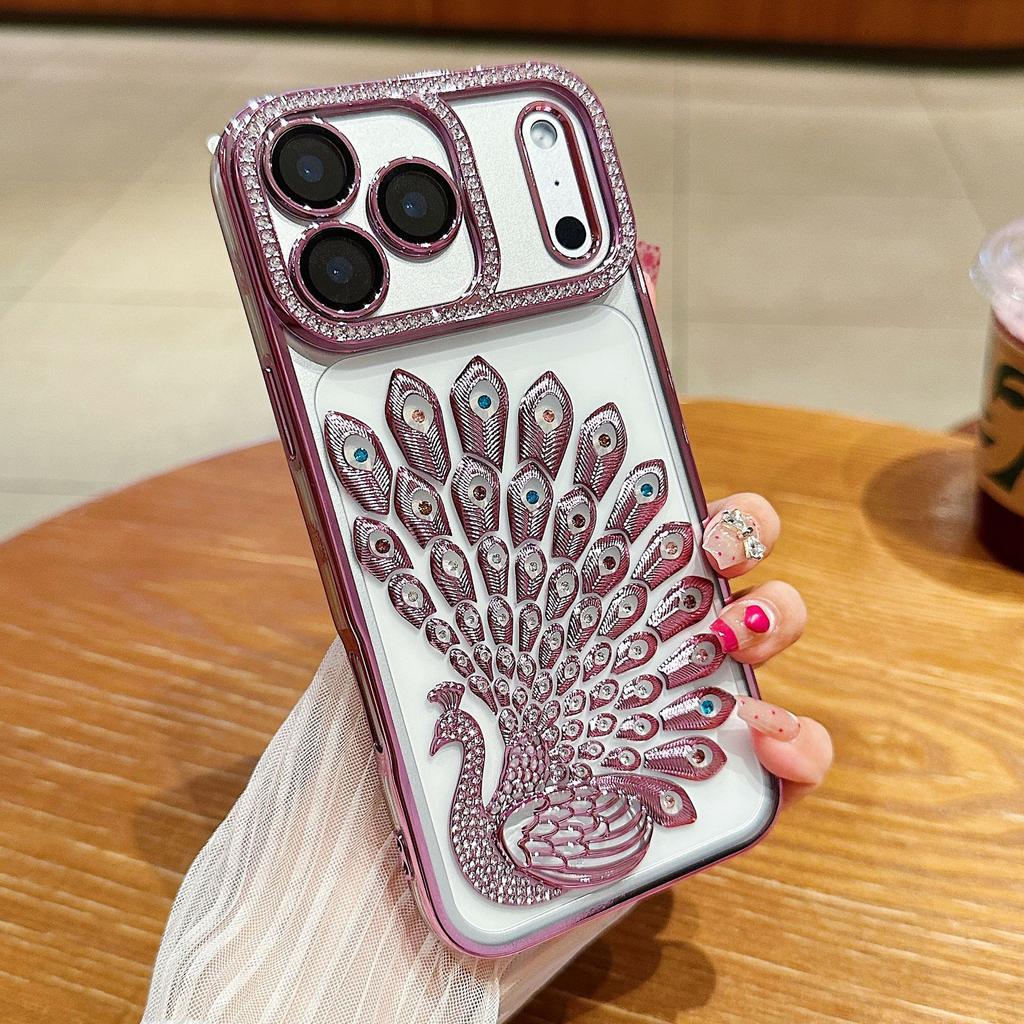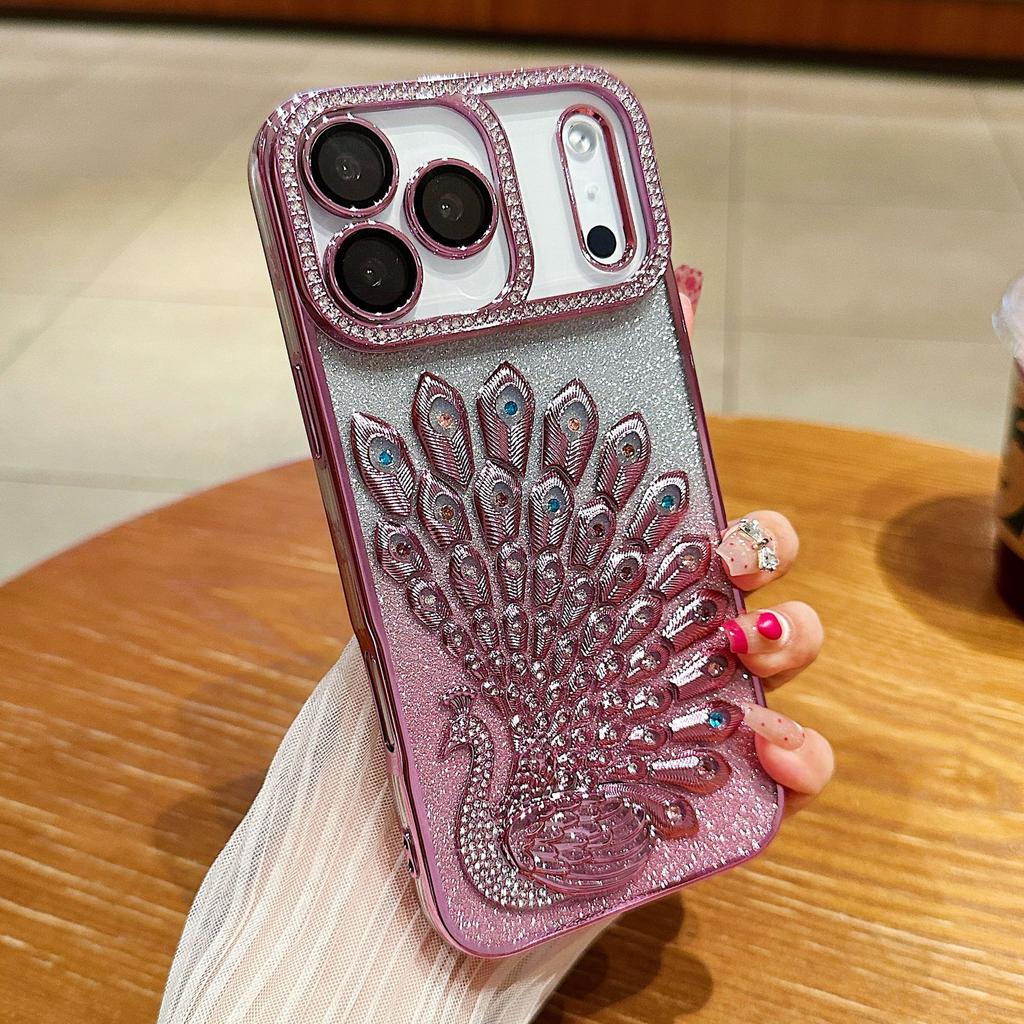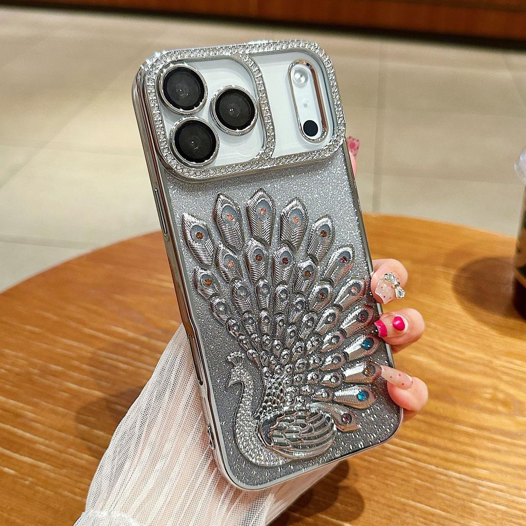 Подходит для Apple 17 ProMax Блестящий Павлин Мобильный Чехол Стразы iPhone 16 Новый Высококлассный Сенсорный 15 Защитный Чехол